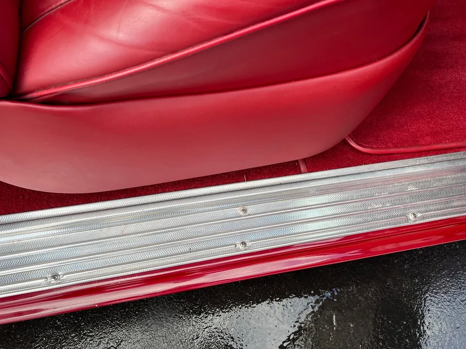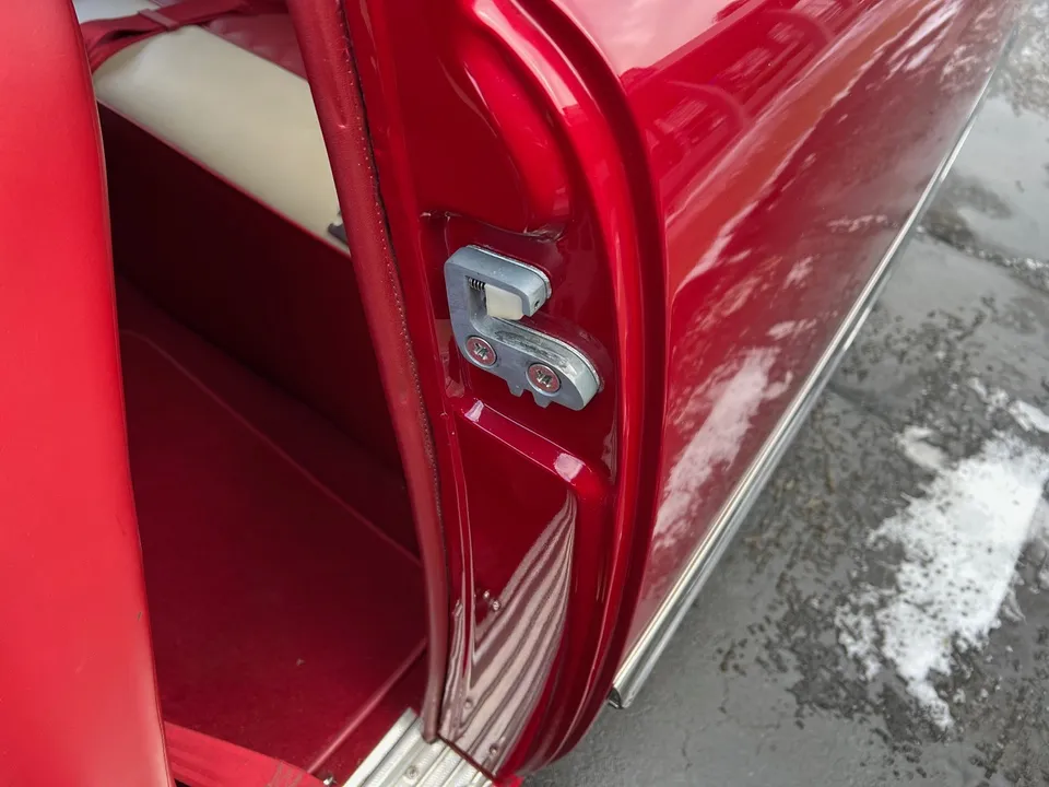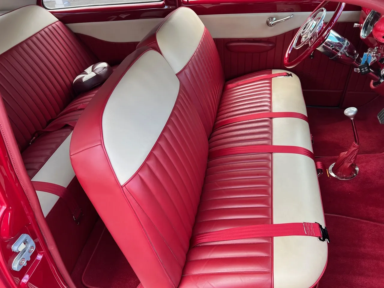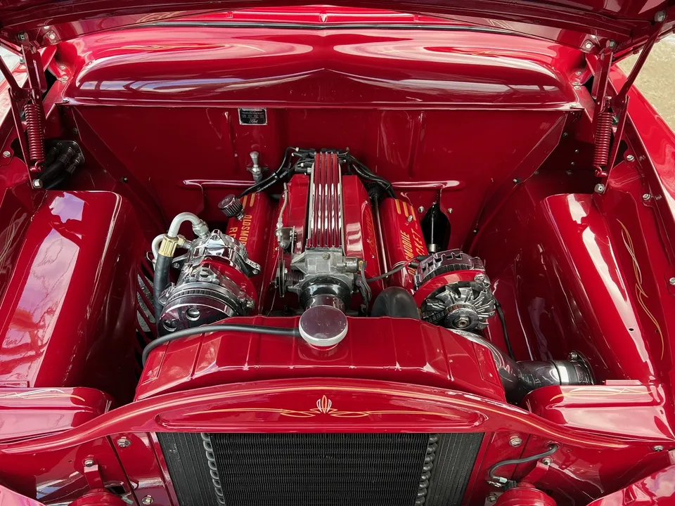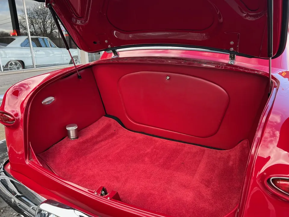 6400 miles on Professional No-Expense-Spare Rotisserie Restoration, stunning Garnet red paint, custom two-tone leather interior, GM Ram Jet 350 ci EFI engine, aluminum intake, ceramic headers, aluminum heads, custom engine covers, power steering, power brakes, Vintage air conditioning, front drop spindles, aluminum radiator with flex fan, 700R4 automatic overdrive transmission, bench seat, chrome tilt column with Lecara steering wheel, Lokar shifter, custom Autometer gauge cluster, am-fm radio, custom tig welded stainless dual exhaust with Smitty’s muffler & chrome tips, exhaust cut-outs, 9” Ford rear end, 245/40ZR18 Uniroyal tires, 205/50ZR17 fronts, 17 & 18” chrome US Mag wheels, finished trunk area, all new wiring harness, custom fuel tank, all new glass, custom front visor, frenched headlight & tail lights, Show Quality!IN STOCK