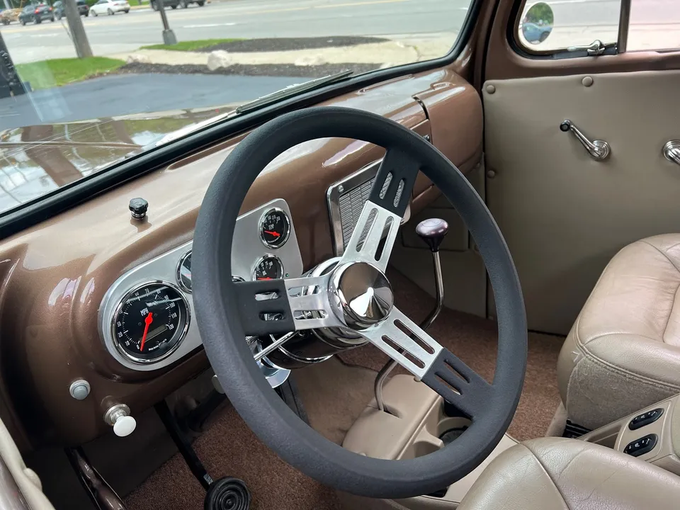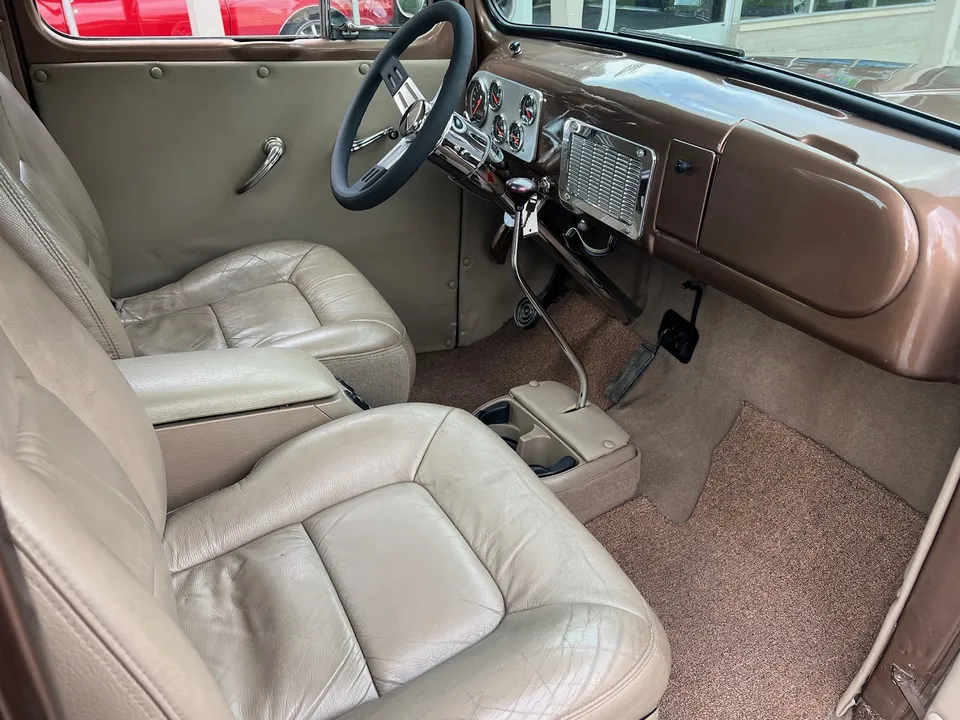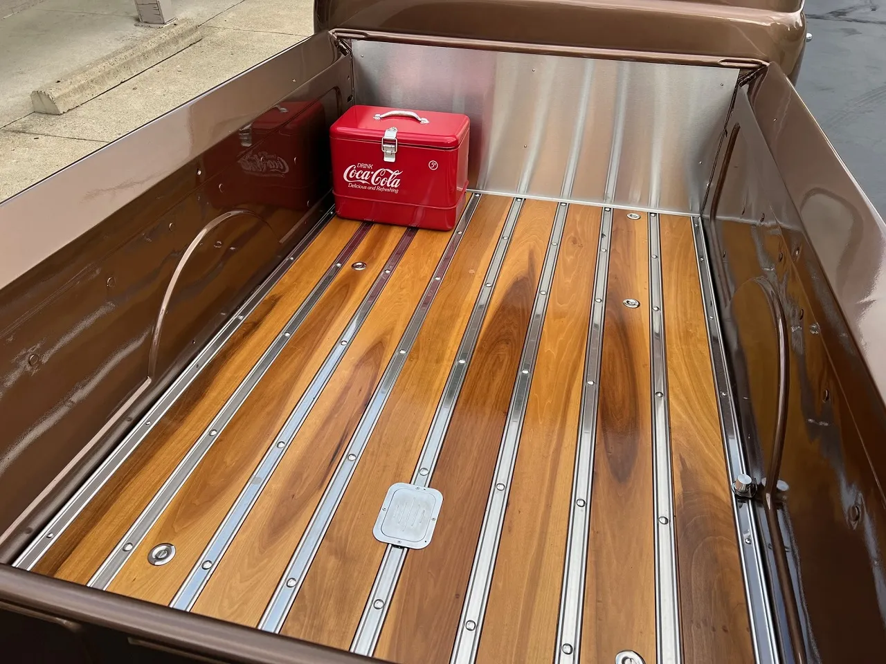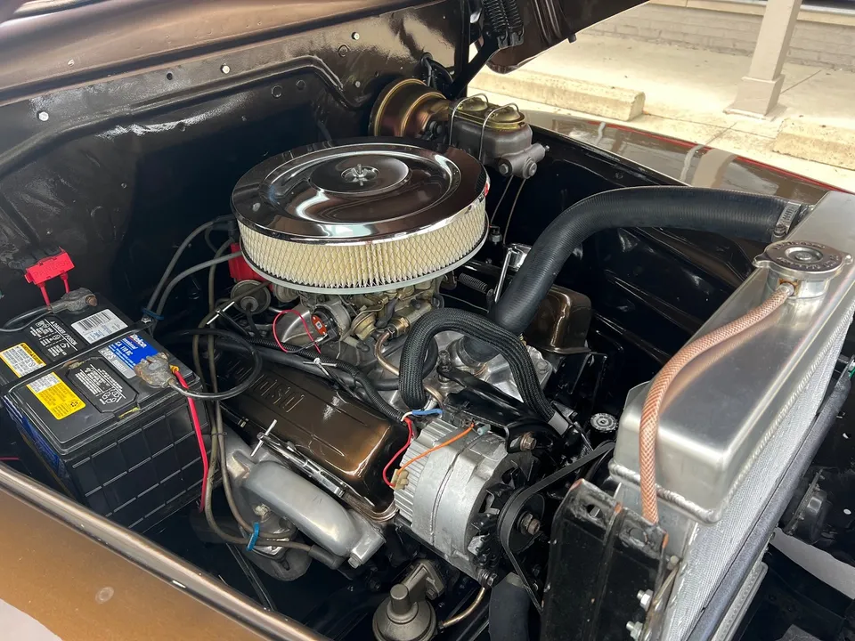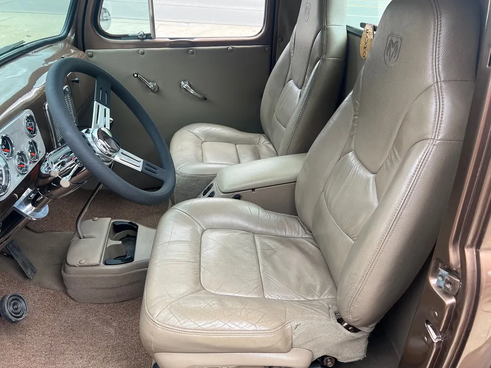 Recent Restoration, beautiful two tone dark brown & Hawaiian brown metallic paint, tan leather interior, 350 ci engine, 4 bbl, Edelbrock polished aluminum intake, ceramic ram’s horn exhaust manifolds, HEI distributor, chrome air cleaner, body color valve covers, Mustang II front suspension with power rack & pinion steering, CPP power front disc brakes, aluminum radiator with flex fan, power bucket seats with console, chrome tilt column with billet wheel, Omega Kustoms gauge cluster, Lokar shifter, Flowmaster dual exhaust, 9” Ford 3.00 rear end with leaf spring suspension, 235/75R15 rear tires, 215/65R15 fronts, 15” chrome Cragar S/S wheels, custom fuel tank, new oak bed, Coca-Cola cooler, all new glass, Painless wiring harness, operable cowl, dual chrome mirrors, Ready to Cruise!IN STOCK