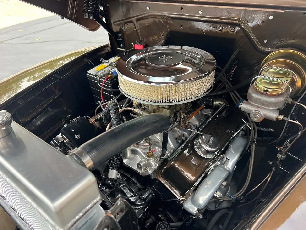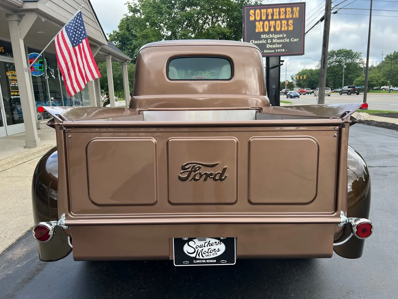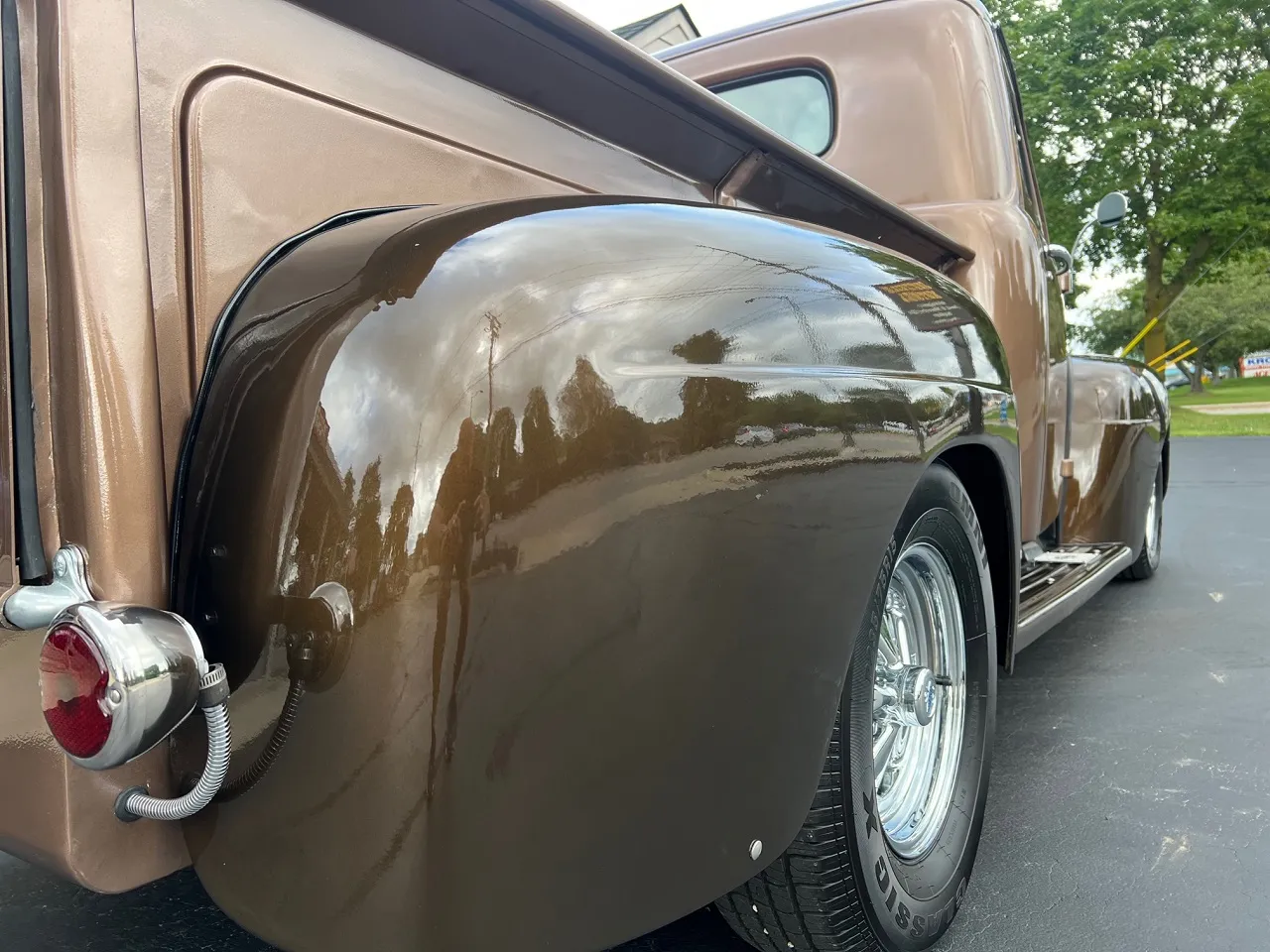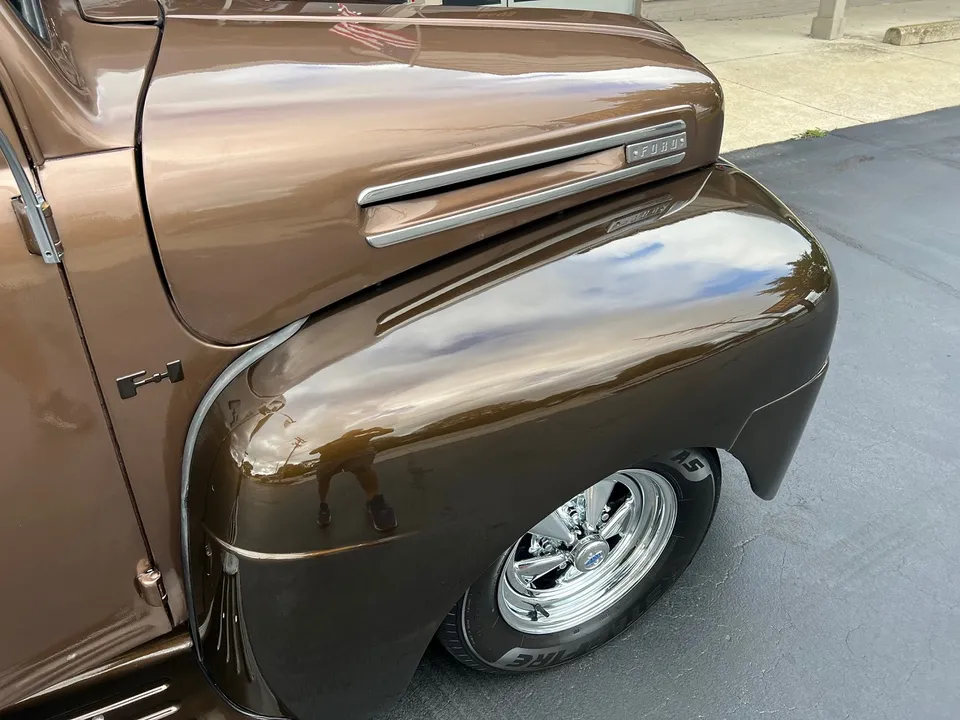 Recent Restoration, beautiful two tone dark brown & Hawaiian brown metallic paint, tan leather interior, 350 ci engine, 4 bbl, Edelbrock polished aluminum intake, ceramic ram’s horn exhaust manifolds, HEI distributor, chrome air cleaner, body color valve covers, Mustang II front suspension with power rack & pinion steering, CPP power front disc brakes, aluminum radiator with flex fan, power bucket seats with console, chrome tilt column with billet wheel, Omega Kustoms gauge cluster, Lokar shifter, Flowmaster dual exhaust, 9” Ford 3.00 rear end with leaf spring suspension, 235/75R15 rear tires, 215/65R15 fronts, 15” chrome Cragar S/S wheels, custom fuel tank, new oak bed, Coca-Cola cooler, all new glass, Painless wiring harness, operable cowl, dual chrome mirrors, Ready to Cruise!IN STOCK