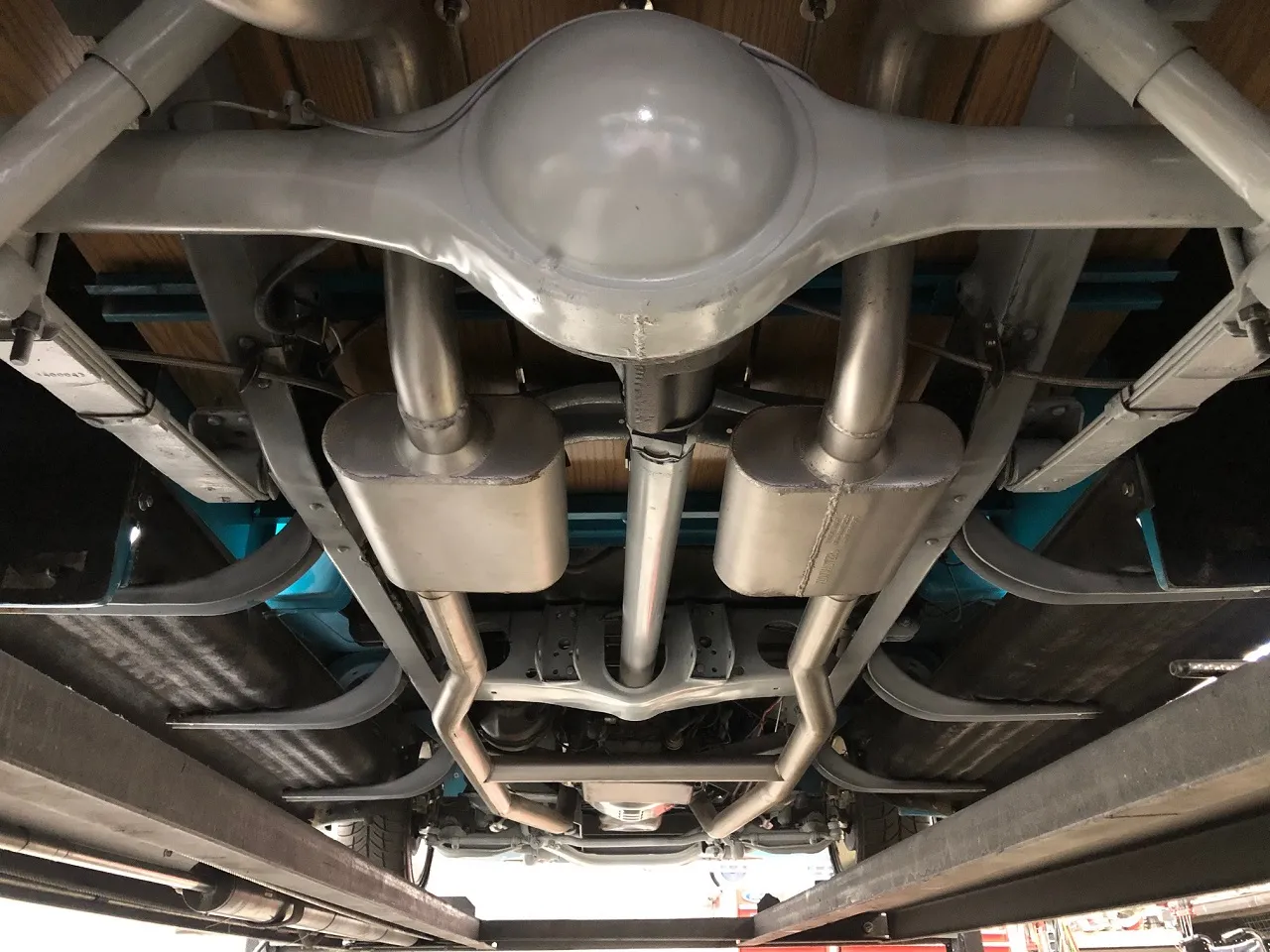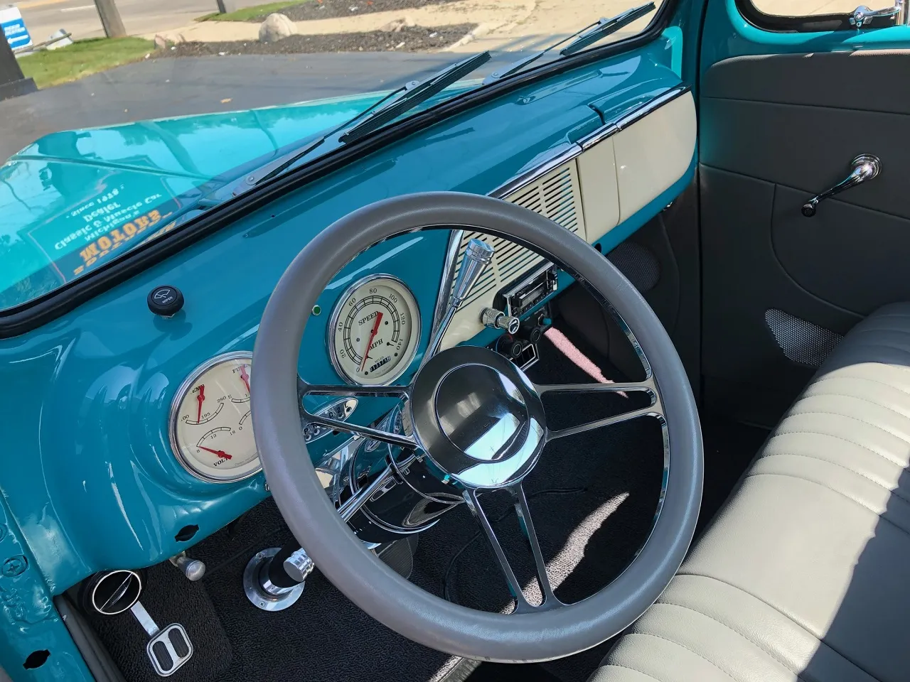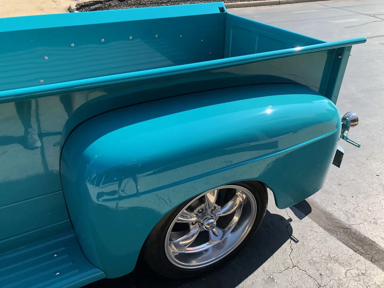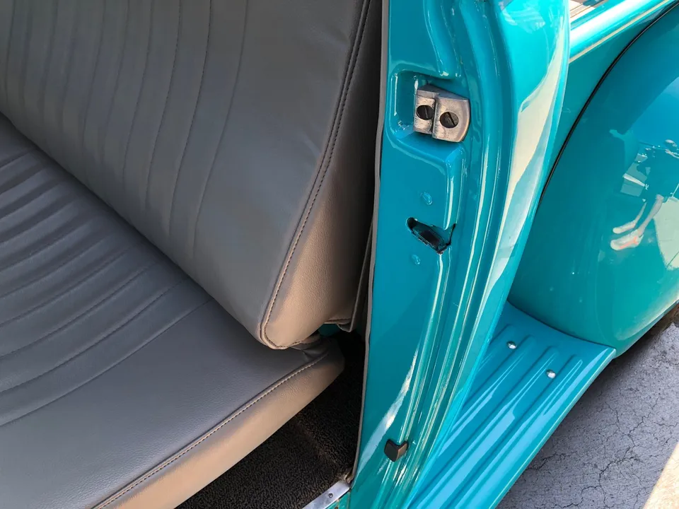 Clean North Carolina truck, Complete Custom Frame Off Build, beautiful Terrace blue, all new grey custom leather interior, 350 ci engine, Edelbrock 4 bbl, polished intake, finned aluminum air cleaner & valve covers, Saunders ceramic headers, Volare Independent Front Suspension, power steering, power front disc brakes, Vintage air conditioning, aluminum radiator, 350 turbodhydramatic transmission, bench seat, Ididit polished tilt column with billet wheel, Classic Instruments gauge cluster, Retrosounds radio, H pipe Flowmaster dual exhaust, leaf spring 9” rear end, 255/45R18 BF Goodrich Touring TA rear tires, 205/50ZR17 fronts, 17 & 18” chrome American Racing wheels, new wood bed, Ready to Cruise!IN STOCK