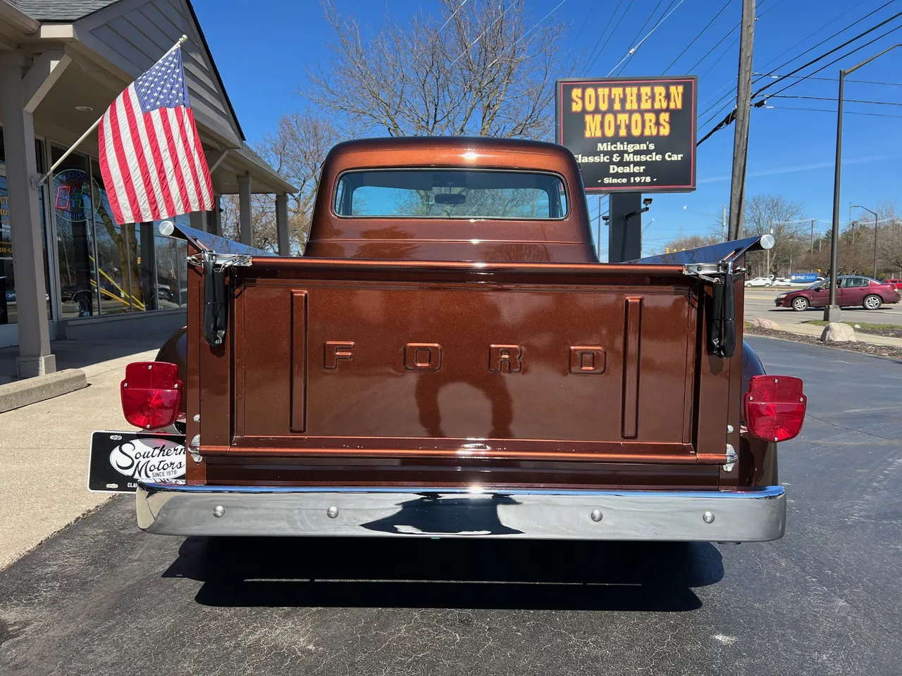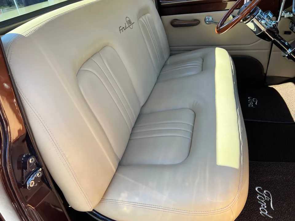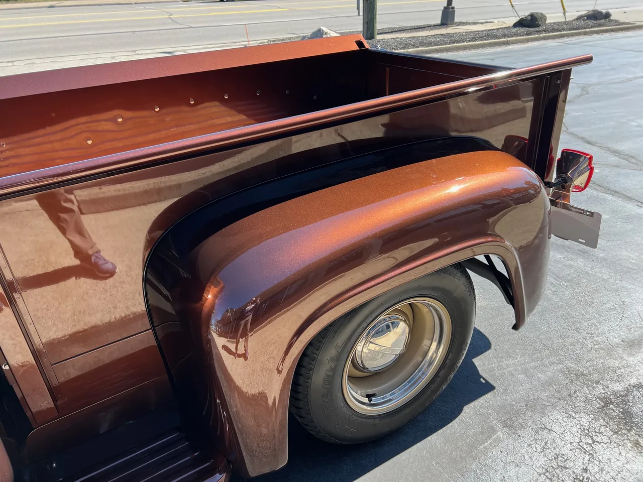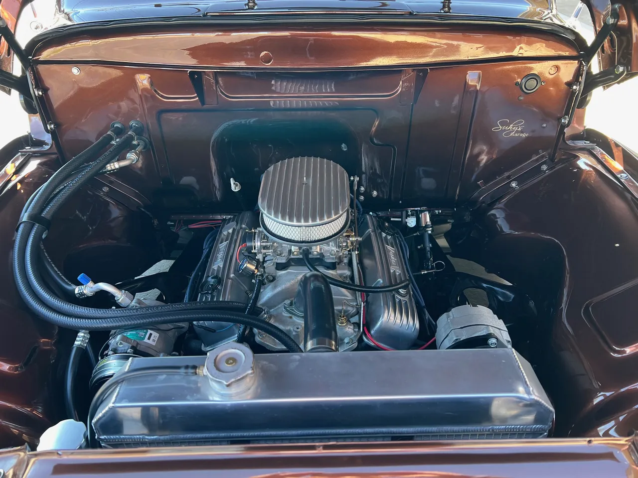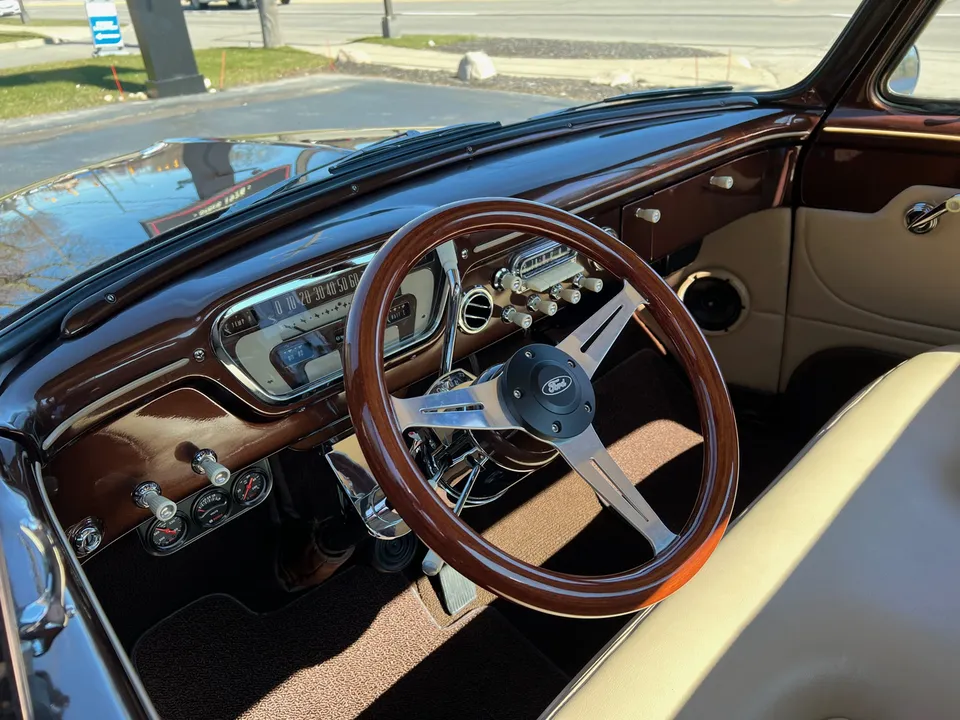 600 miles on Complete Frame-Off Restoration, stunning Root Beer metallic paint, plush tan leather interior, 350 ci engine, Edelbrock 650 cfm 4 bbl, Comp camshaft, Edelbrock aluminum intake, headers, HEI distributor, finned aluminum air cleaner & valve covers, Camaro front subframe with power steering, power front disc brakes, Vintage air conditioning, aluminum radiator with electric fan, 700R4 automatic overdrive transmission, bench seat, chrome tilt column with wood wheel, factory dash, Bosch gauges, Retrosounds radio, functional cowl, Flowmaster dual exhaust, 10 bolt 3.73 limited slip rear end, 275/60R15 rear tires, 235/60R15 fronts, 15” custom steel wheels with caps & rings (10”wide rears), custom Chestnut patina wood bed, new glass, dual chrome mirrors, Show Quality!
