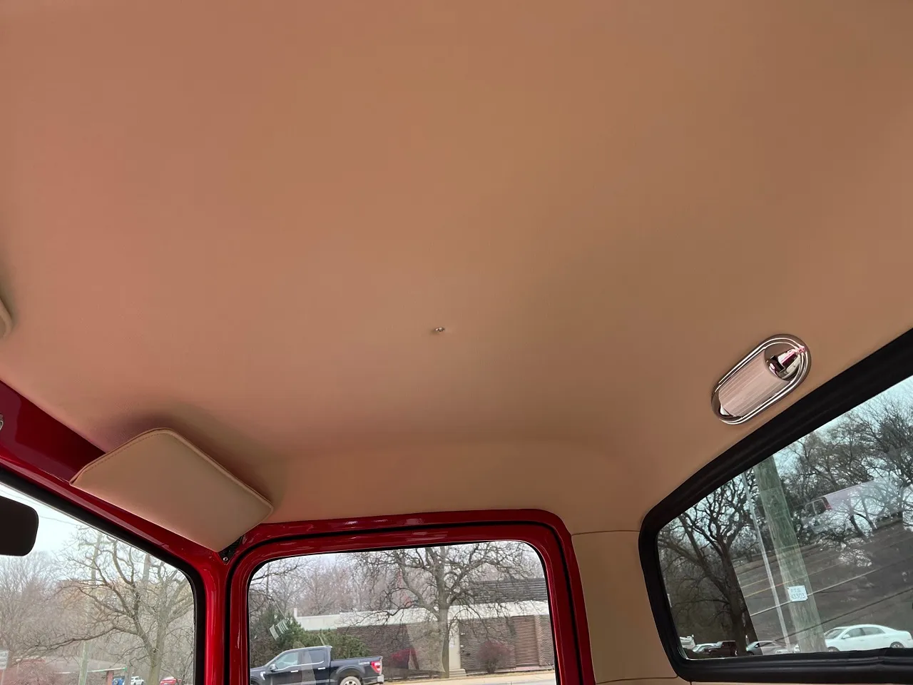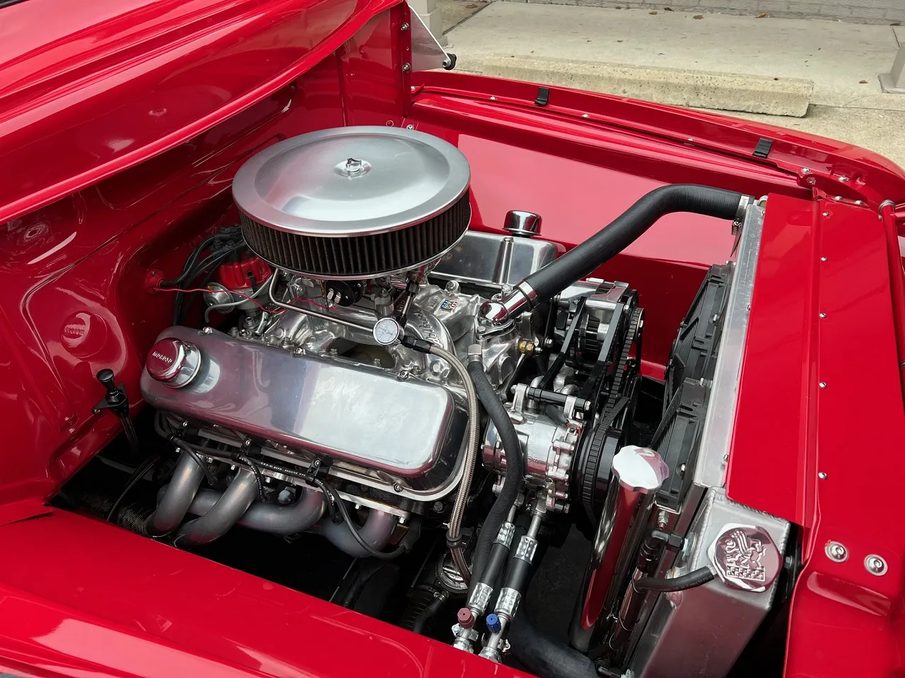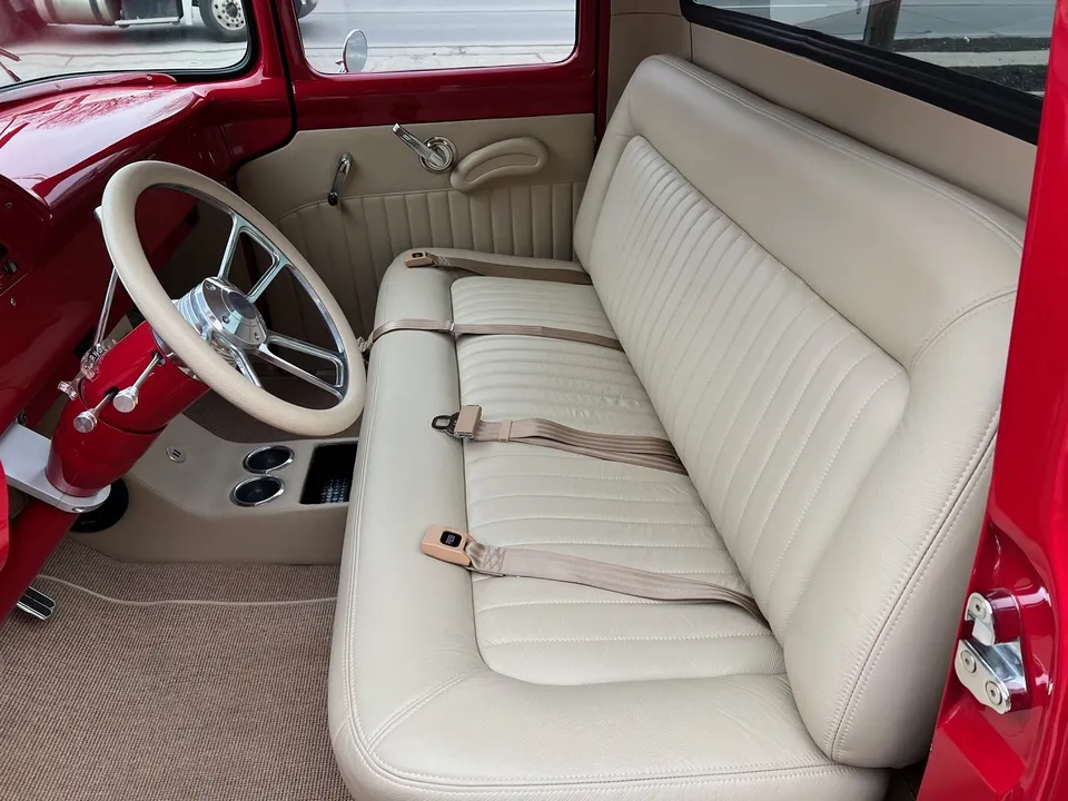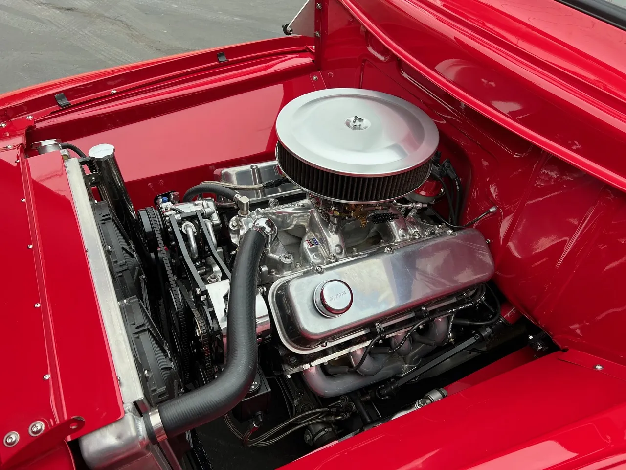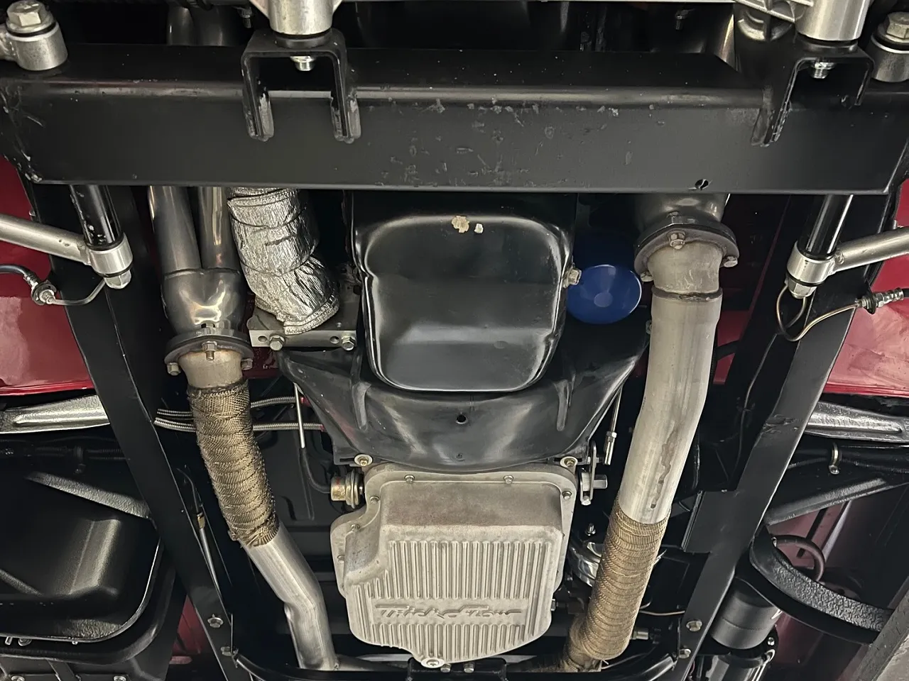 2100 miles on Complete Frame Off Restoration, All Steel, stunning Torch red paint, beautiful Katzkin vanilla leather interior, Merritt Brothers built 454 ci engine, Holley 670 cfm 4 bbl, Edelbrock RPM Air Gap aluminum intake, ceramic headers, billet air cleaner & valve covers, Fat Man Fabrications Mustang II tubular front suspension with power rack & pinion steering, power front disc brakes, Vintage air conditioning, Street Drive front runner system, Griffin aluminum radiator with dual electric fans, 400 turbohydramatic transmission, bench seat, tilt column with billet wheel, all new gauge cluster, Boss touchscreen sound system, custom console, German wool carpet, H pipe Flowmaster dual exhaust, John’s Industries 9” Ford 3.55 traction-lock rear end, 28X12R18LT Michey Thompson Sportsman rear tires, 245/40ZR18 fronts, 18” Billet Specialties wheels (10” wide rears), 19 gallon stainless fuel tank, all new glass with 1 piece side glass, Ron Francis wiring harness, Dynomat, No Limit tilt hood, Show Quality!IN STOCK