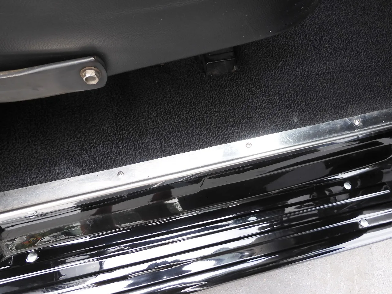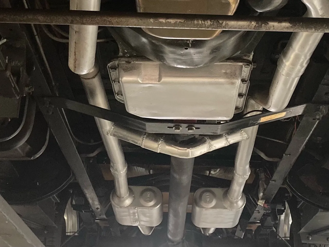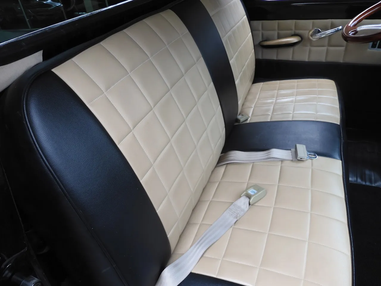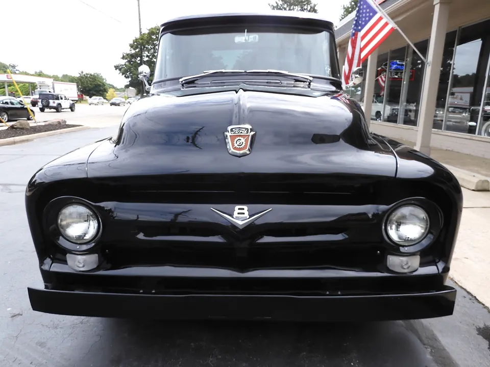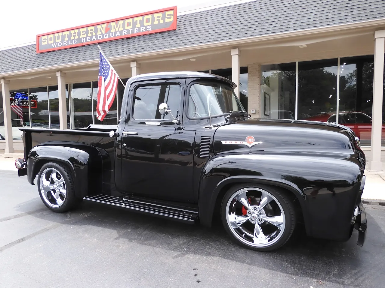 All Steel Georgia truck, beautiful Tuxedo black paint, custom two tone interior, Target Master 350 ci/330 hp crate engine, Edelbrock 4 bbl, Edelbrock Air Gap aluminum intake, aluminum heads, K&N filet top air cleaner, Edelbrock finned aluminum valve covers, MSD Pro Billet distributor, ceramic headers, power steering, power front disc brakes, PMT front drop axled with sway bar, air conditioning, aluminum radiator, bench seat, Ididit polished title column with wood wheel, Autometer gauge cluster, JVC sound system, Lokar shifter, power windows, H pipe Flowmaster dual exhaust with chrome tips, 10 bolt 3.23 rear end with Trick Flow billet cover, Air Lift wireless ride control system, 275/40R20 rear tires, 245/35ZR20 fronts, 20” chrome REV wheels, wood bed, Ready to Cruise!IN STOCK