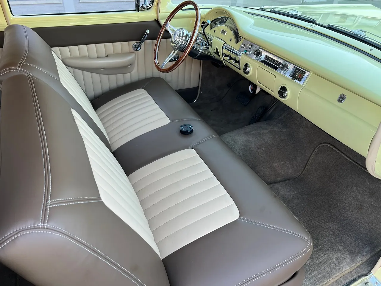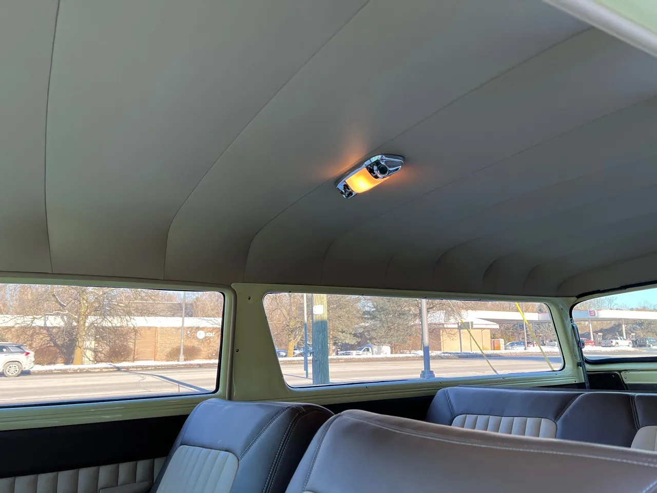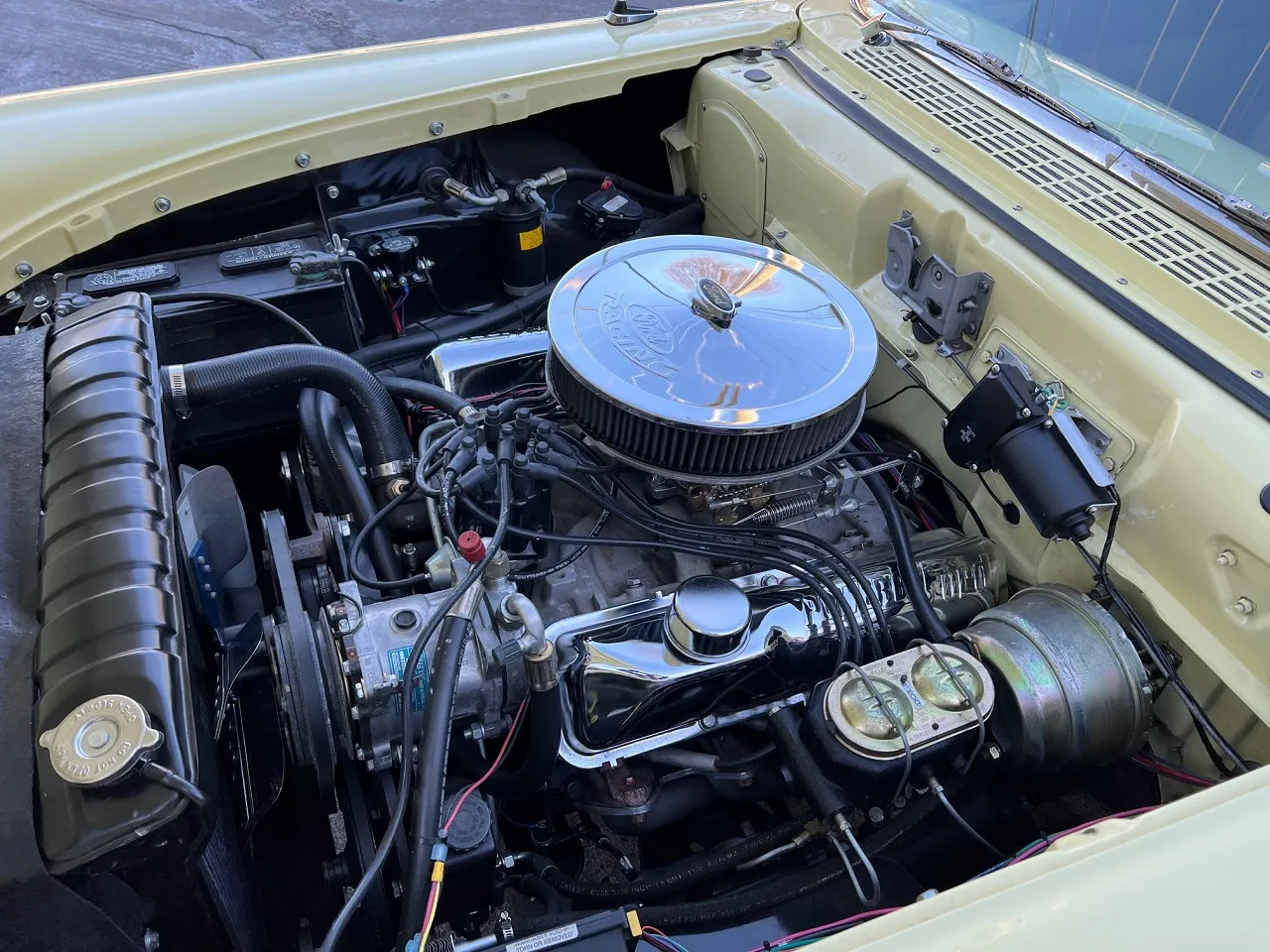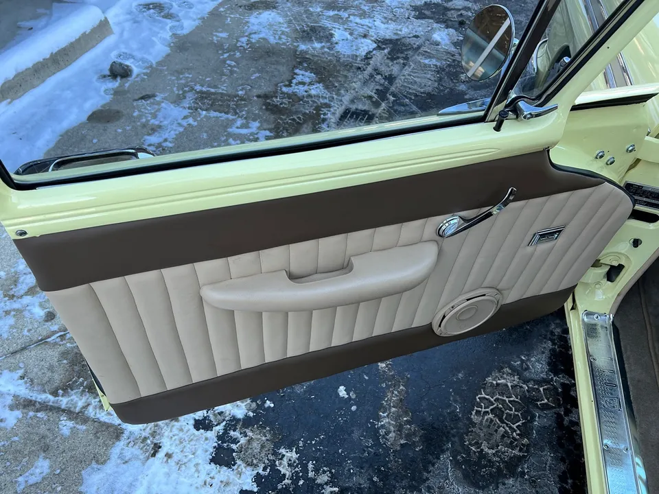 Less than 5000 miles on Complete Frame Off Restoration, clean North Carolina car, beautiful Butternut yellow paint, custom Two Tone leather interior, 390 ci engine, Edelbrock 4 bbl, Edelbrock Performer RPM aluminum intake, ceramic headers, Borgous power steering, power front disc brakes, Vintage heat & air conditioning, chrome air cleaner & valve covers, automatic overdrive transmission with cruise control, bench seat, Ididit tilt column with billet wheel, factory dash, custom sound system, power windows, fold-down rear seat, functional rear window and hatch, dual exhaust, 9” 3.50 rear end with multi-leaf suspension, front & rear sway bars, 275/40R18 rear tires, 235/45R17 fronts, 17” & 18” Coys C5 chrome wheels with spinner cap, tinted glass, aftermarket wiring harness, Rare Factory 2 Door Wagon, Drive Anywhere!IN STOCK