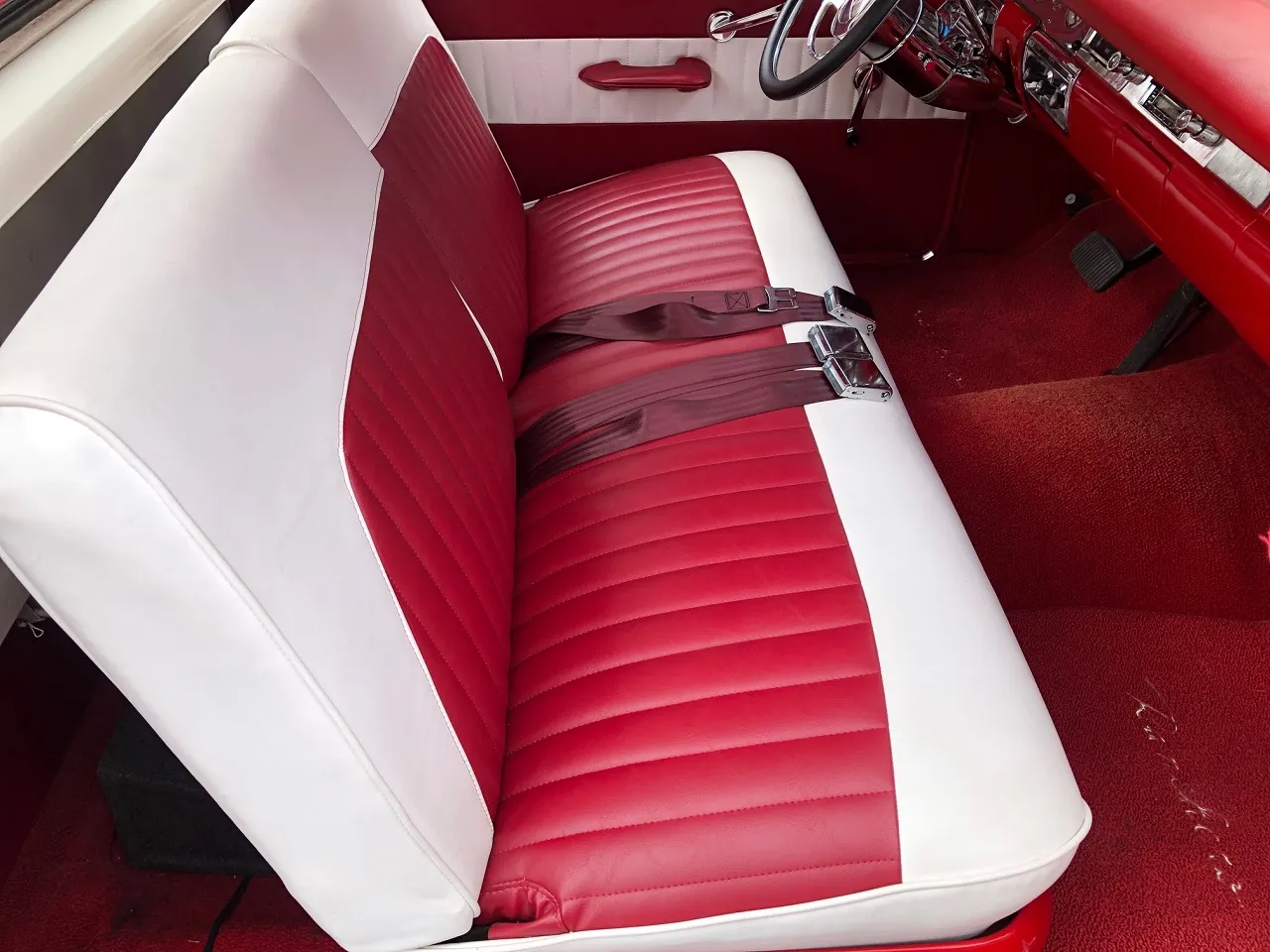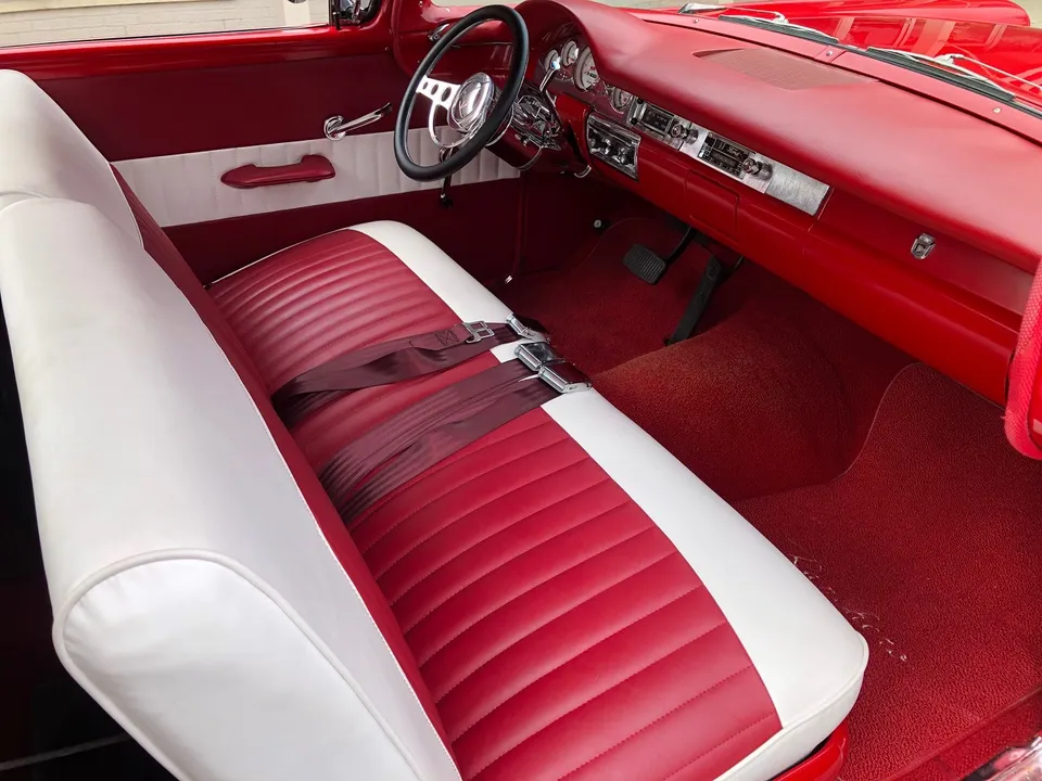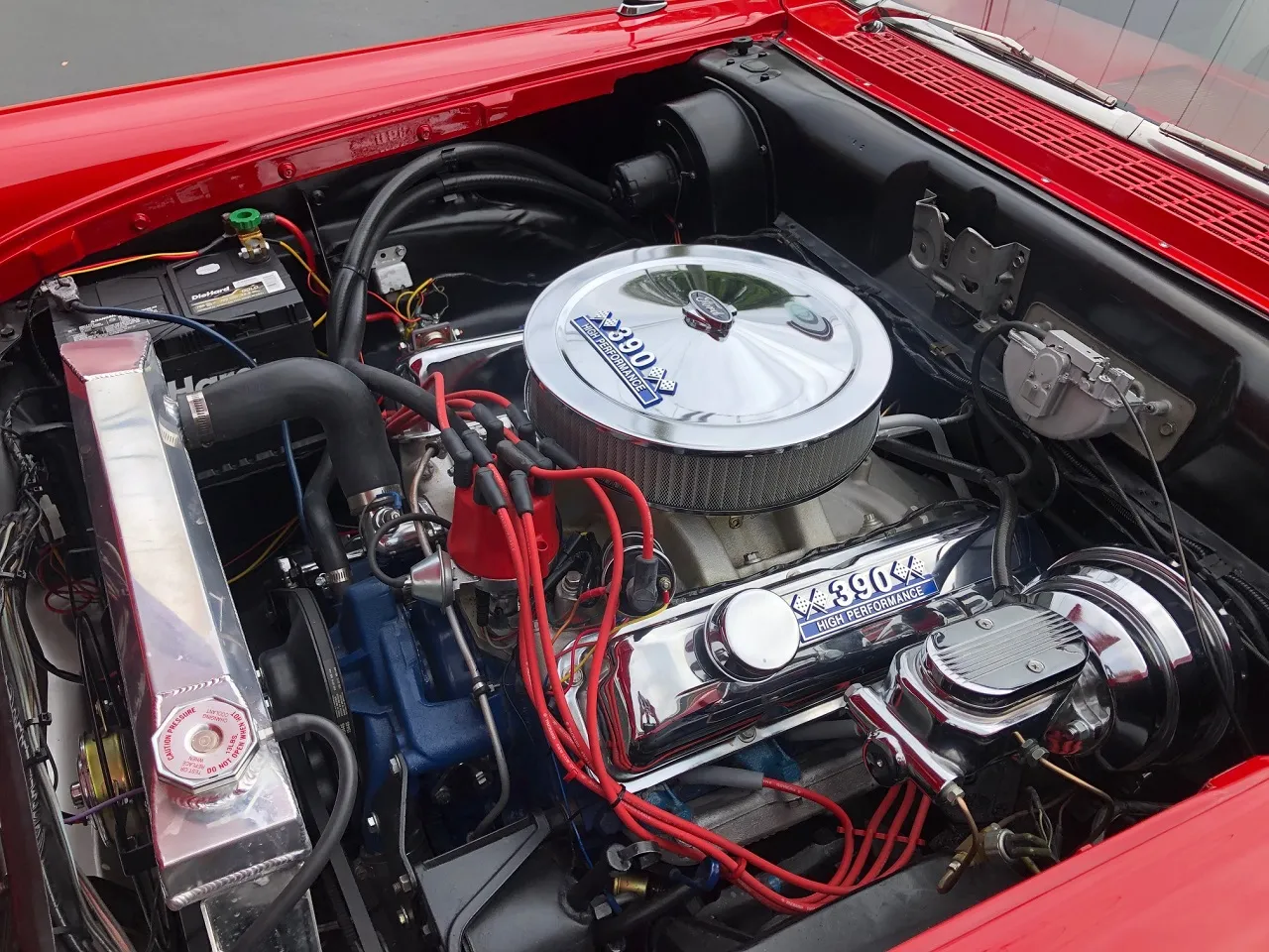 1400 miles on Frame-Up Restoration, beautiful Flame red paint, two tone custom interior, 390 ci engine, Holley Performance dual feed 4 bbl, Edcelbrock Performer RPM aluminum intake factory exhaust manifolds, chrome air cleaner & valve covers, HEI distributor, power steering, power front disc brakes with chrome master cylinder & booster, aluminum radiator with electric fan, automatic overdrive transmission, bench seat, Ididit chrome tilt column with billet wheel, Dolphin gauge cluster, Audiosounds retro radio, Flowmaster dual exhaust, 9” 3.50 traction-lock rear end, 215/50R17 tires, 17” chrome Ridler wheels, Show Quality!IN STOCK