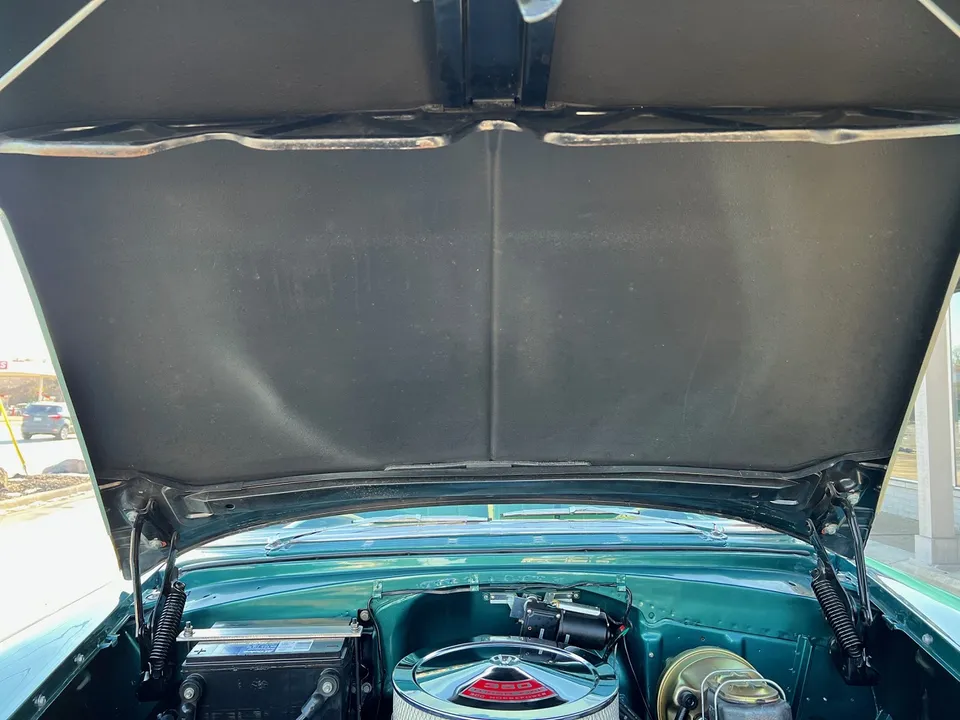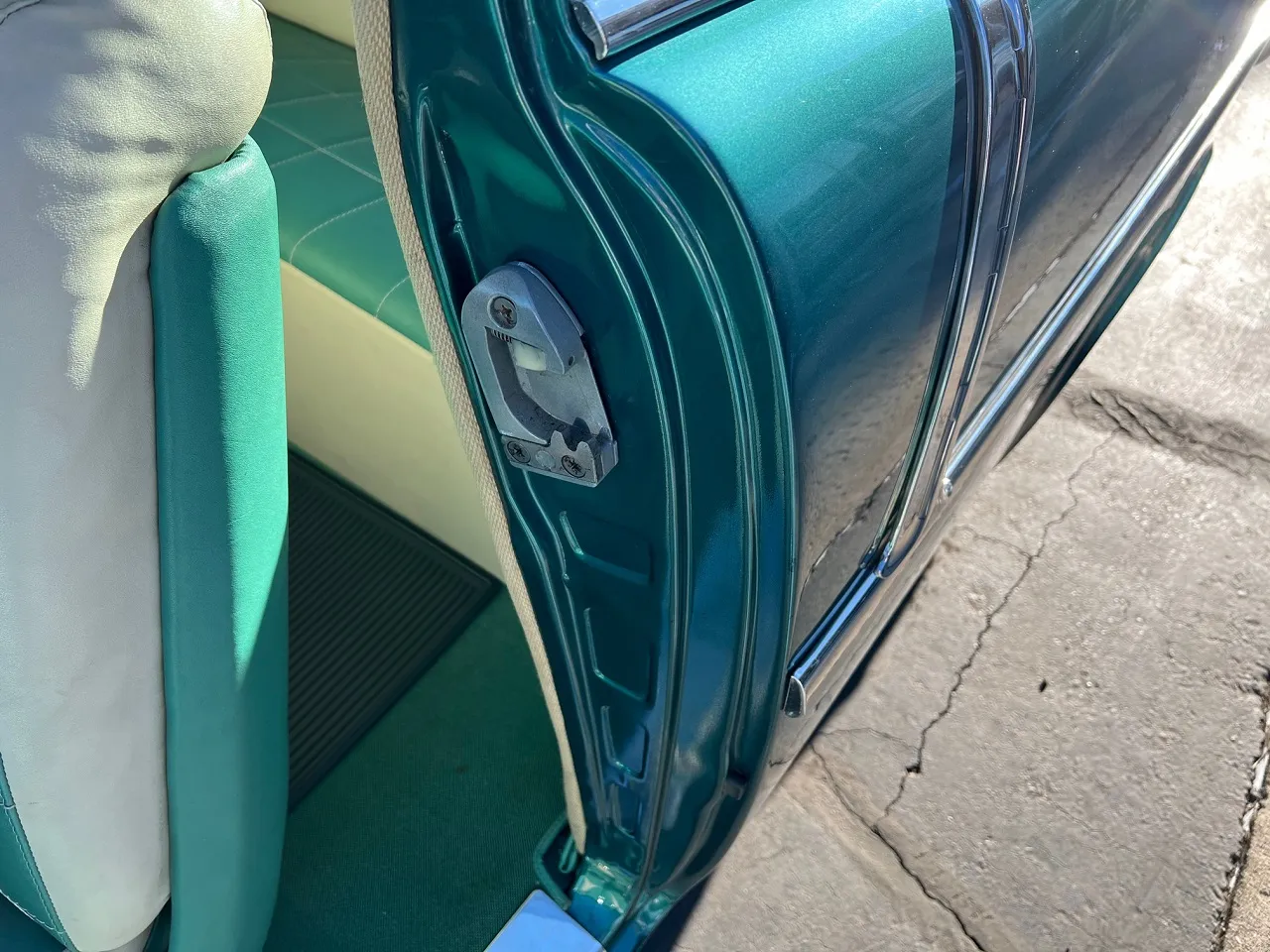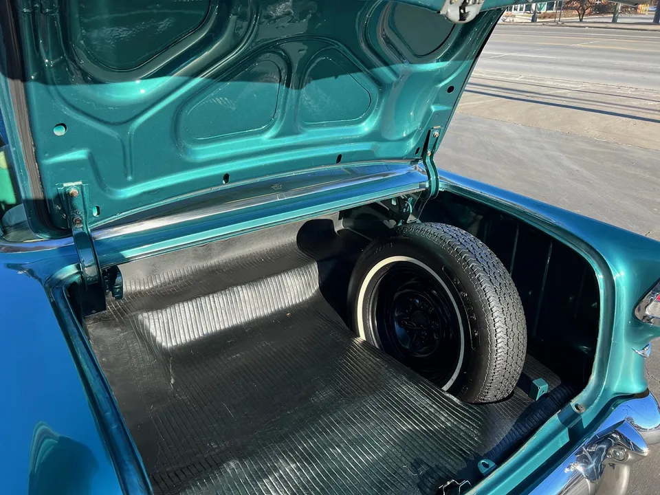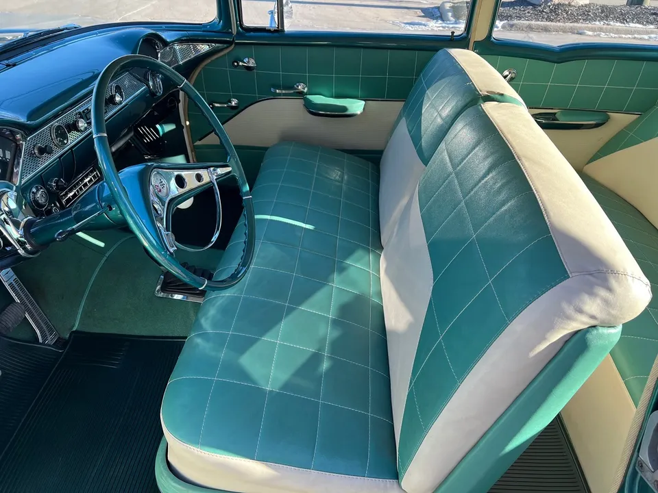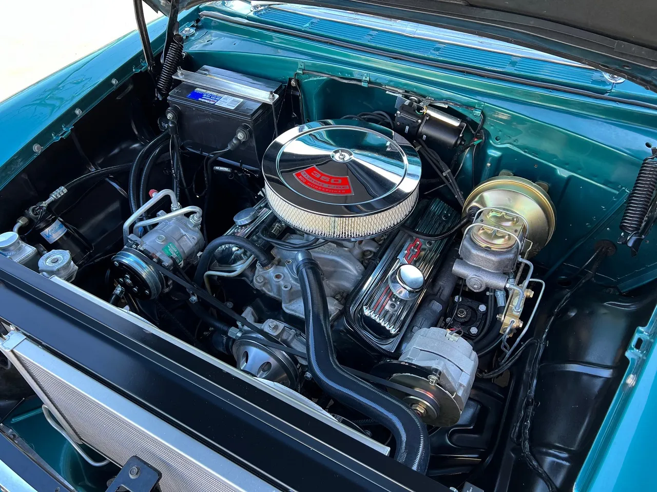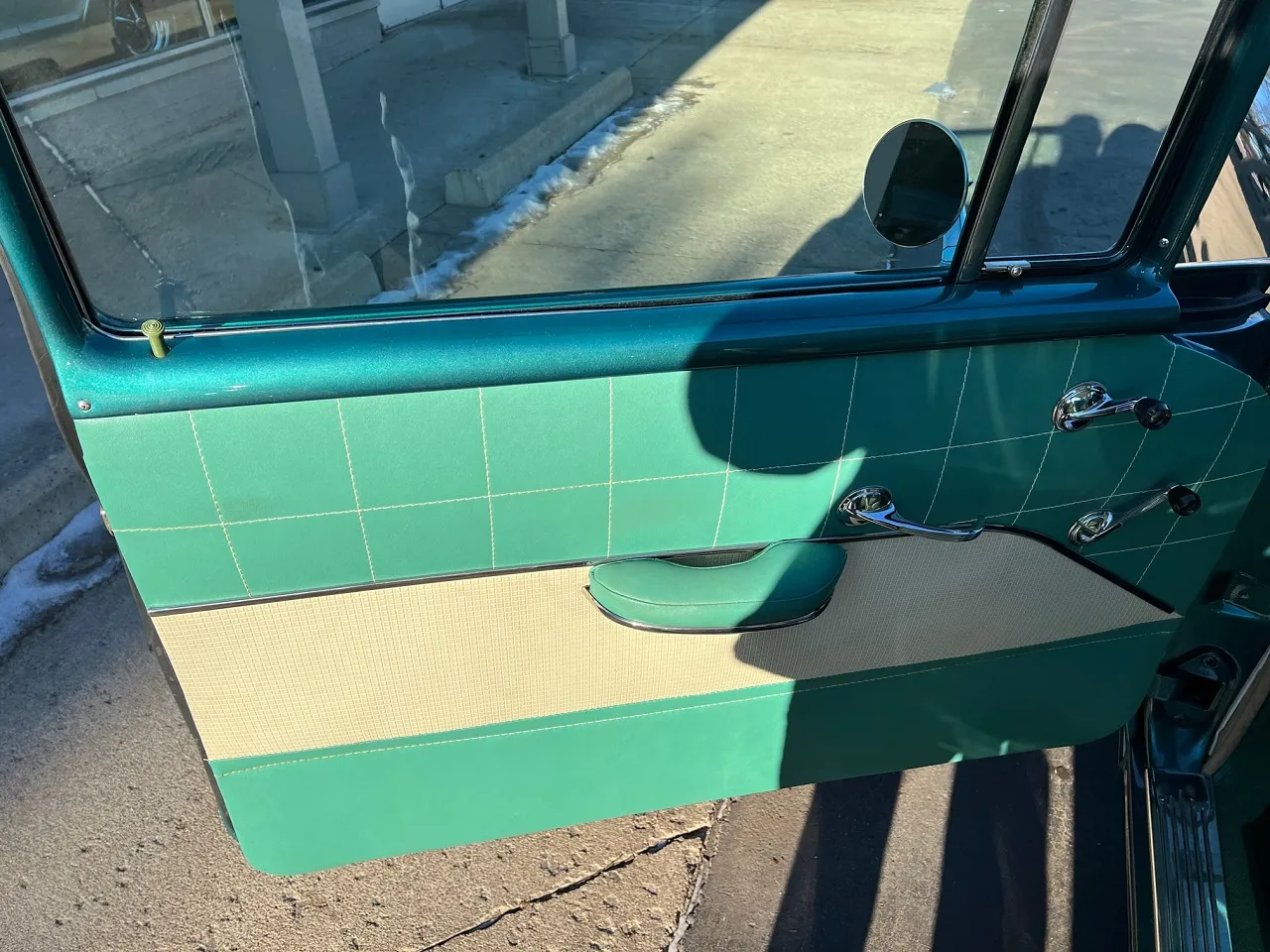 7300 miles on Complete Frame-Off Restoration, beautiful Neptune green metallic & Shoreline beige, matching two tone Del Ray interior, 350 ci GM crate engine, 4 speed manual transmission, Carter 4 bbl, GM aluminum intake, Ram’s horn exhaust manifolds, chrome air cleaner & valve covers, HEI distributor, power steering, power front disc brakes, Vintage heat & A/C, aluminum pulley’s, aluminum radiator with dual electric fans, Billstein adjustable coil over front shocks, factory bench seat, Hurst shifter, 59’ Impala steering wheel, factory dash, Retrosounds am-fm radio, Daytona carpet, new Flowmaster dual exhaust, GM 10 bolt 3.73 limited slip rear end with leaf springs, aluminum fuel tank, 245/40ZR20 rear tires, 225/45R18 fronts, 18 & 20” Coys C5 wheels, lowered 2”, shaded glass, LED tail lights, dual chrome mirrors, Ready to Cruise!