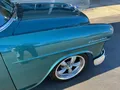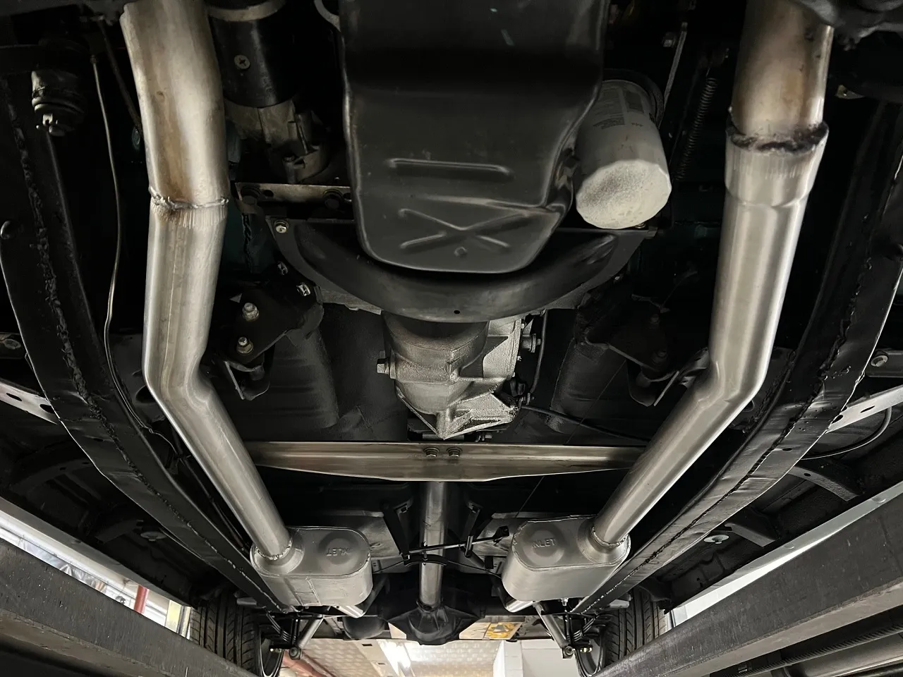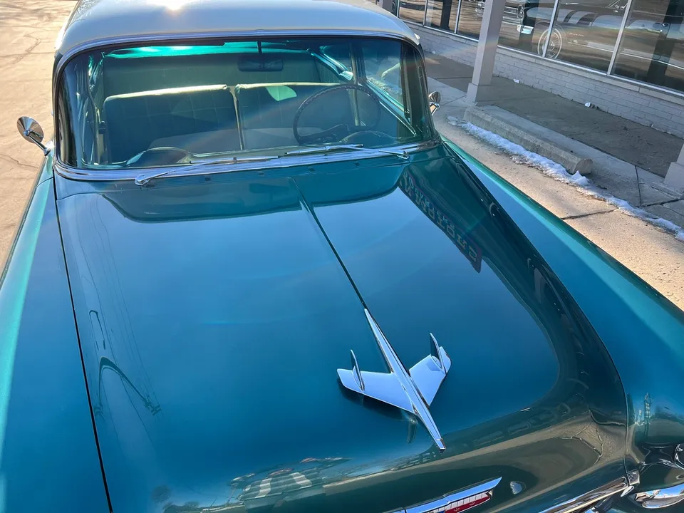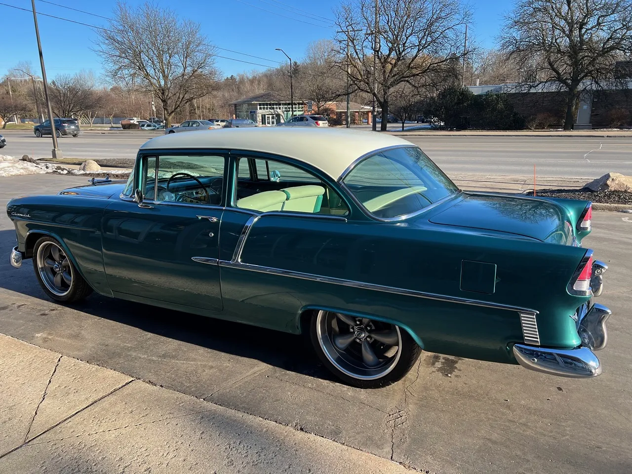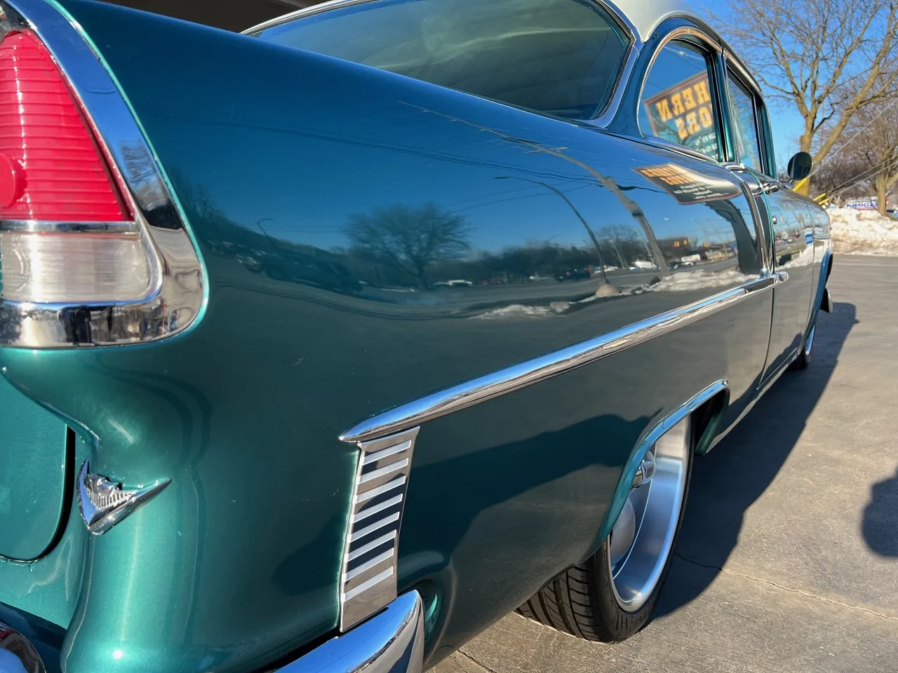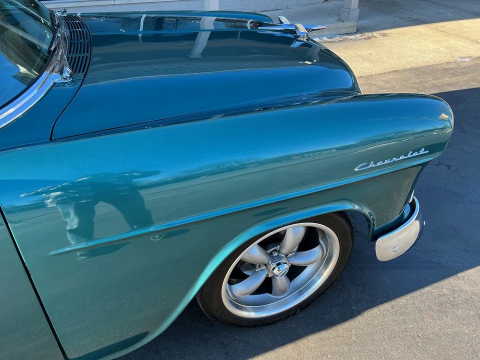 7300 miles on Complete Frame-Off Restoration, beautiful Neptune green metallic & Shoreline beige, matching two tone Del Ray interior, 350 ci GM crate engine, 4 speed manual transmission, Carter 4 bbl, GM aluminum intake, Ram’s horn exhaust manifolds, chrome air cleaner & valve covers, HEI distributor, power steering, power front disc brakes, Vintage heat & A/C, aluminum pulley’s, aluminum radiator with dual electric fans, Billstein adjustable coil over front shocks, factory bench seat, Hurst shifter, 59’ Impala steering wheel, factory dash, Retrosounds am-fm radio, Daytona carpet, new Flowmaster dual exhaust, GM 10 bolt 3.73 limited slip rear end with leaf springs, aluminum fuel tank, 245/40ZR20 rear tires, 225/45R18 fronts, 18 & 20” Coys C5 wheels, lowered 2”, shaded glass, LED tail lights, dual chrome mirrors, Ready to Cruise!