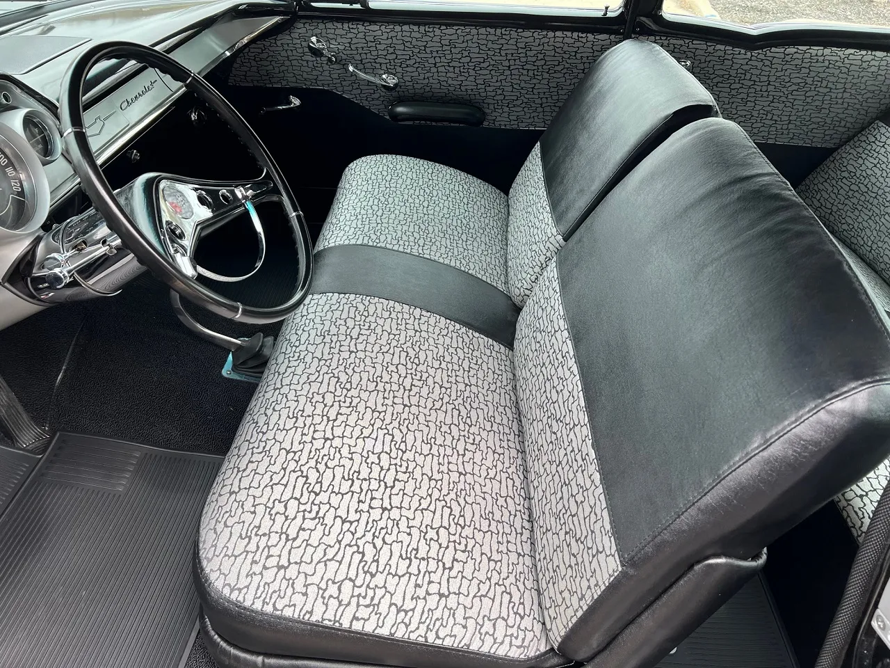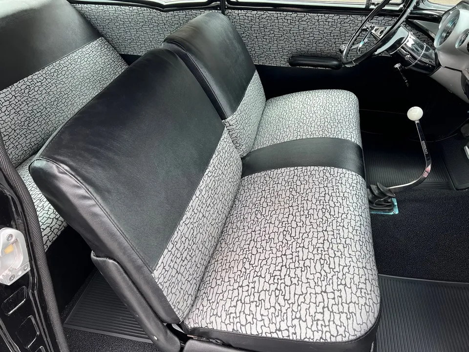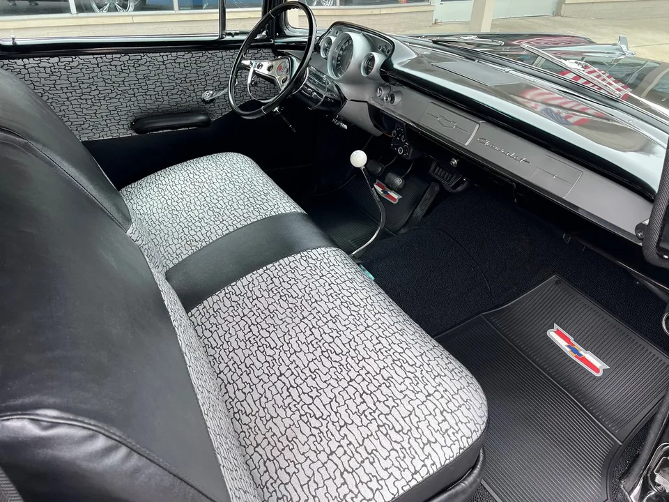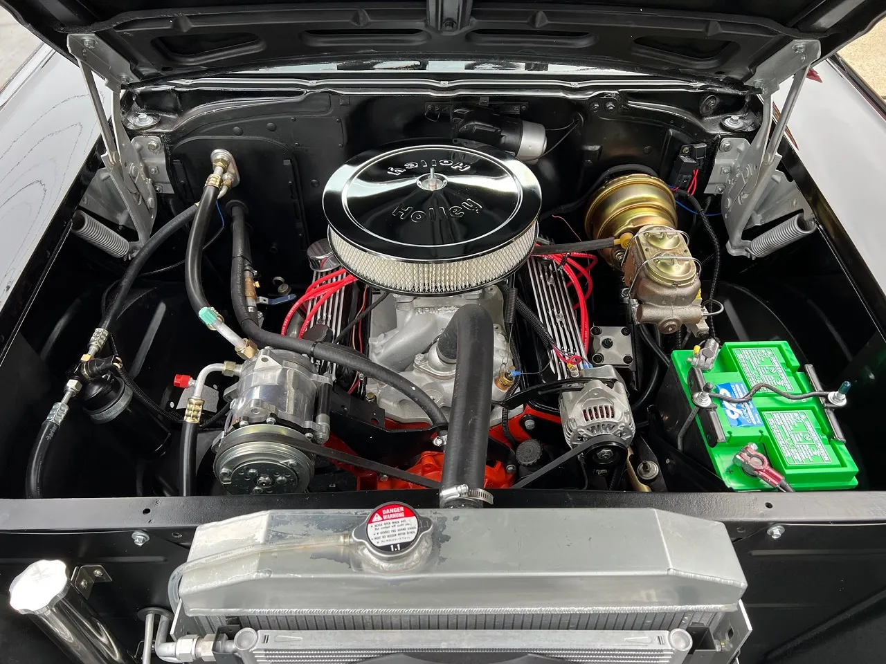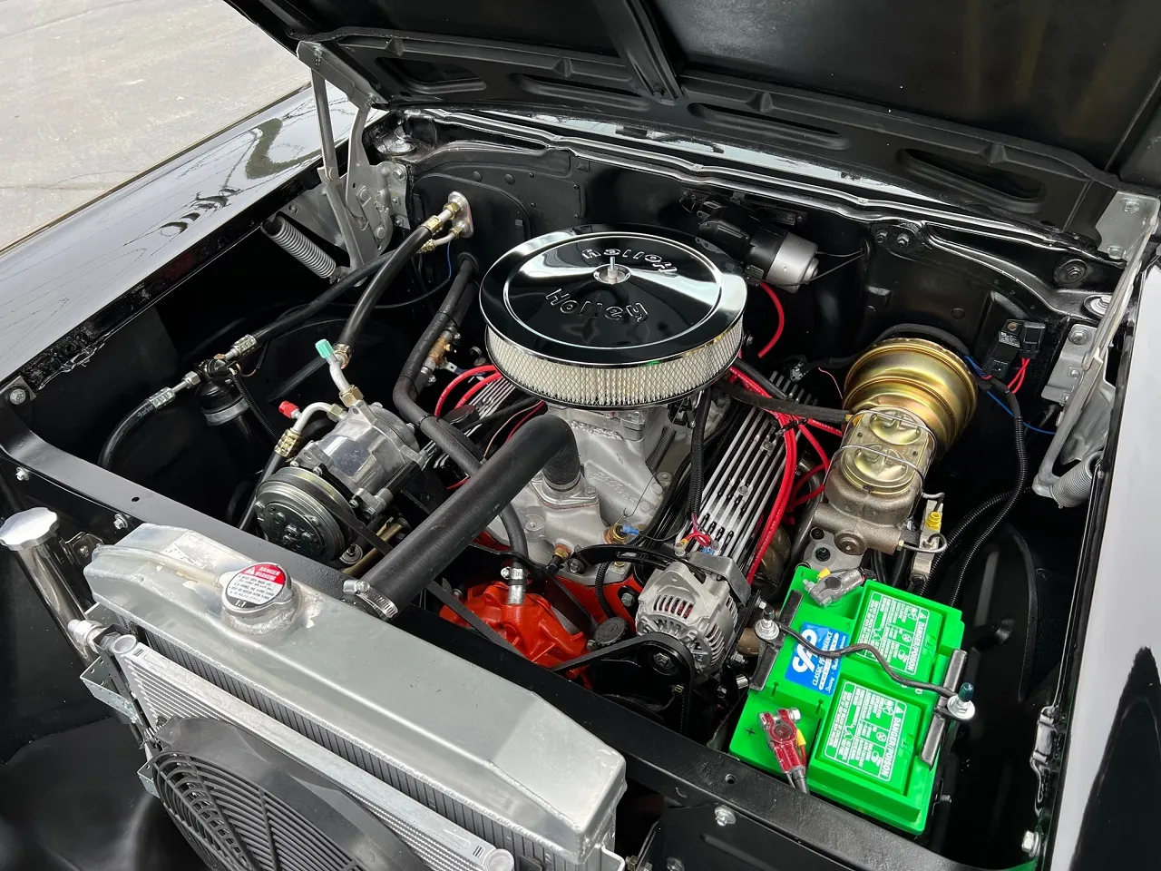 Recent Body Up Restoration, Black Widow tribute car, beautiful two tone Onyx black & India Ivory, all new black & silver factory cloud pattern interior, crate 350 ci engine, Holley Sniper EFI, HEI distributor, Edelbrock Air Gap Performer aluminum intake, headers, power steering, power front disc brakes, Vintage heat & A/C, CPP tubular upper & lower control arms, front sway bar, aluminum radiator with flex fan, Saginaw 4 speed manual transmission, factory bench seat, chrome tilt column with retro 59’ steering wheel, factory dash, new dual exhaust, factory rear end with 3.50 limited slip rear end, 255/60R15 BF Goodrich Radial TA rear tires, 195/65R15 fronts, 15” Radir wheels with spinner caps, Ready to Cruise!
