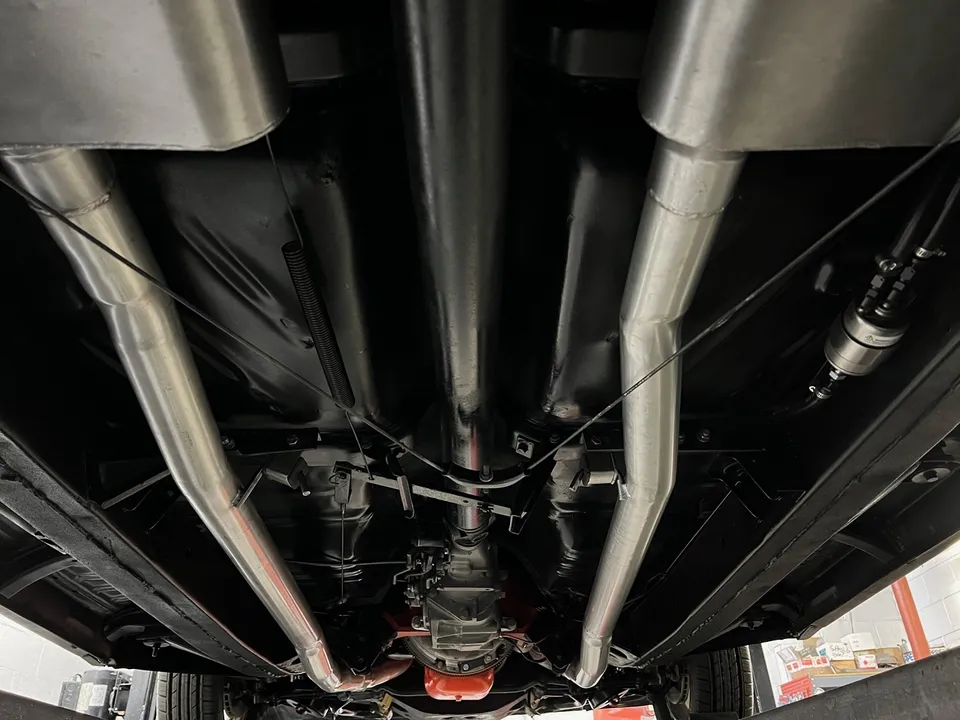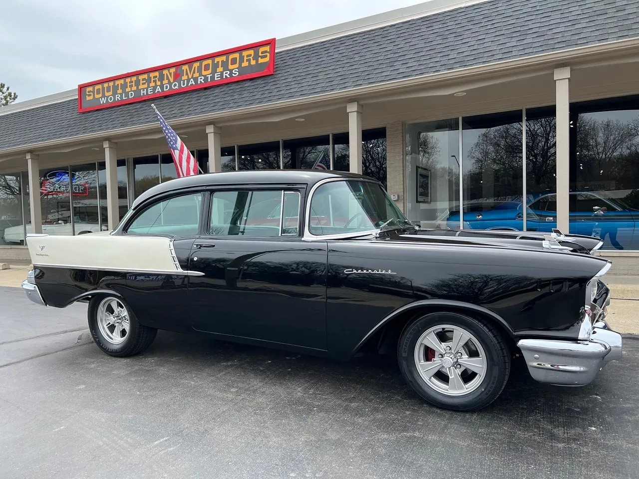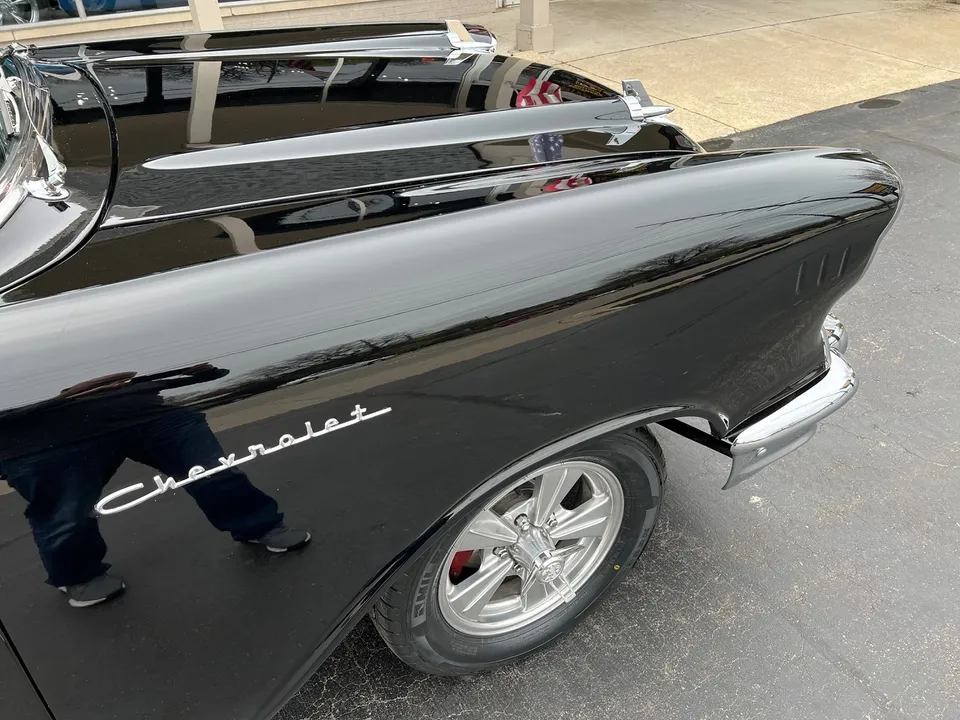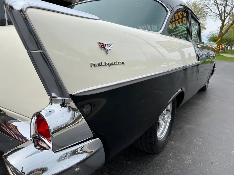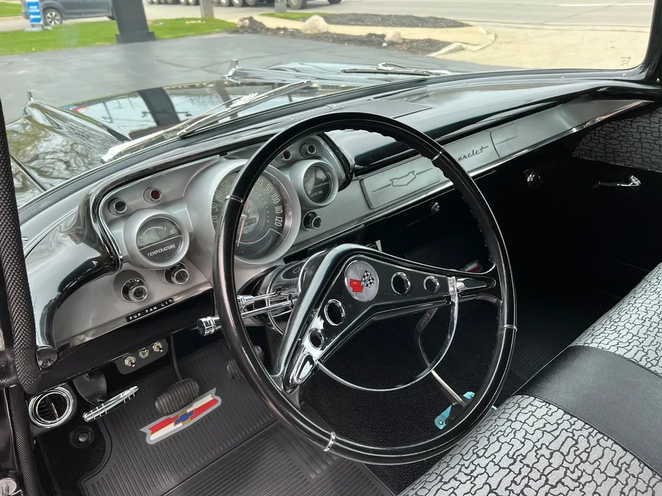 Recent Body Up Restoration, Black Widow tribute car, beautiful two tone Onyx black & India Ivory, all new black & silver factory cloud pattern interior, crate 350 ci engine, Holley Sniper EFI, HEI distributor, Edelbrock Air Gap Performer aluminum intake, headers, power steering, power front disc brakes, Vintage heat & A/C, CPP tubular upper & lower control arms, front sway bar, aluminum radiator with flex fan, Saginaw 4 speed manual transmission, factory bench seat, chrome tilt column with retro 59’ steering wheel, factory dash, new dual exhaust, factory rear end with 3.50 limited slip rear end, 255/60R15 BF Goodrich Radial TA rear tires, 195/65R15 fronts, 15” Radir wheels with spinner caps, Ready to Cruise!