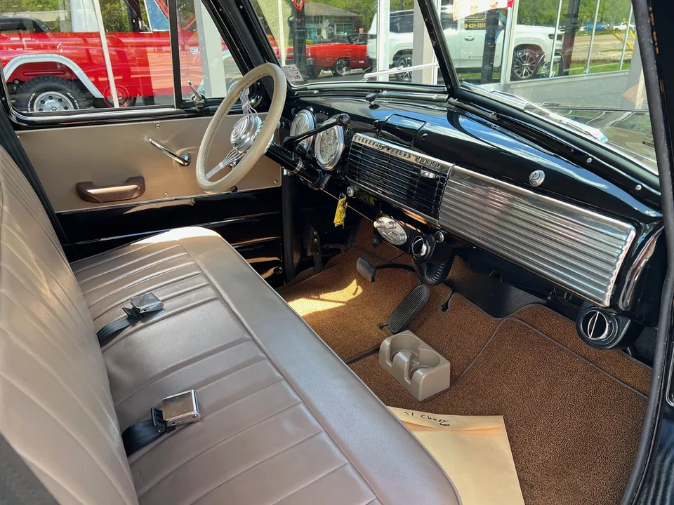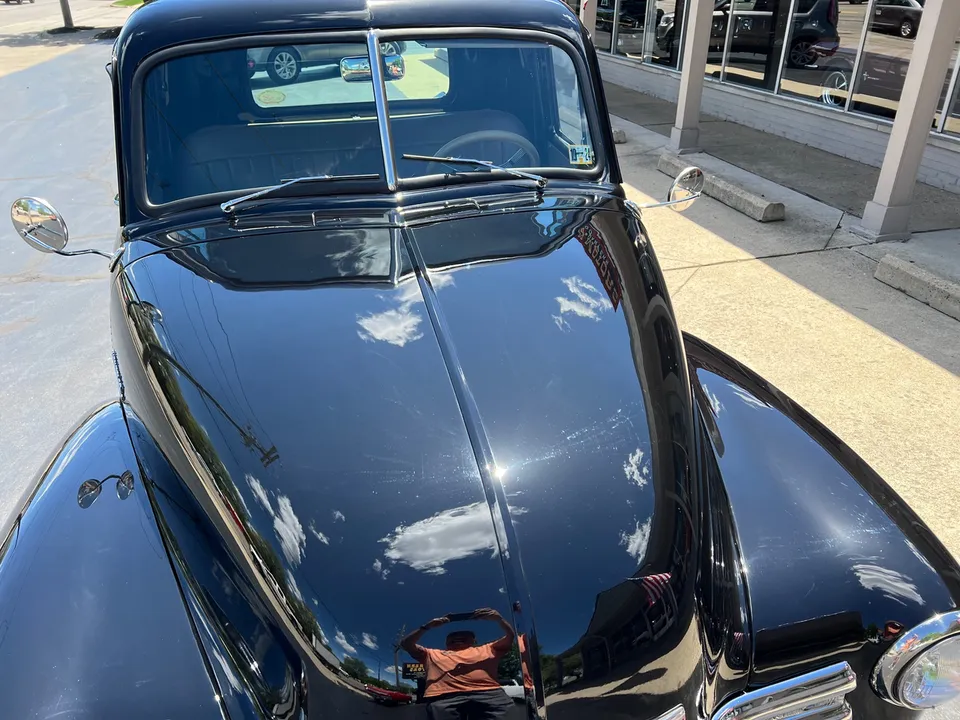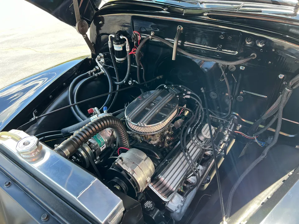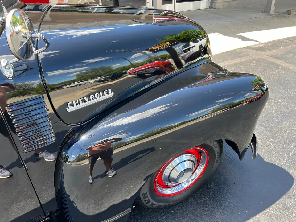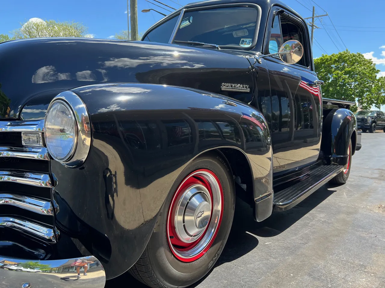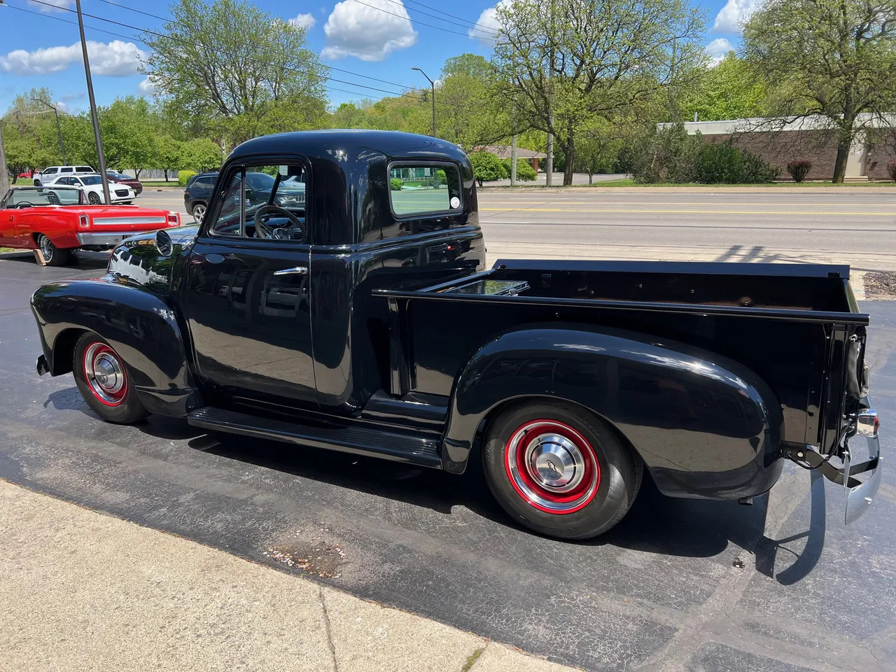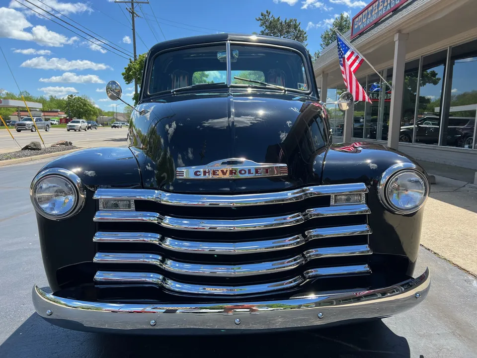 1700 miles on Frame-Off Restored All Steel truck, beautiful Tuxedo black paint, Tan vinyl interior, 350 ci engine, 4 bbl, factory intake & exhaust manifolds, finned aluminum valve covers & air cleaner, HEI distributor, Fat Man Mustang II front suspension with power rack & pinion steering, front disc brakes, Vintage air conditioning, aluminum radiator with shroud, 700R4 automatic overdrive transmission, bench seat, Banjo steering wheel, Dolphin gauges, dual exhaust, GM 10 bolt rear end, wood bed, 215/75R15 tires, 15” Steel with caps & rings, electric wipers, dual mirrors, Ready to Cruise!