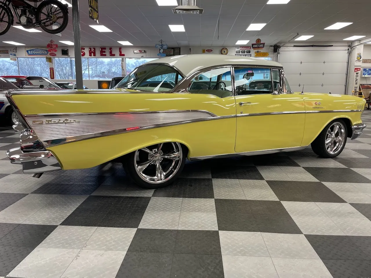 Coming Soon! 1957 Chevrolet Belair, two-door hardtop, Ram Jet crate 350 EFI, Automatic overdrive transmission, power steering, power disc brakes, vintage air conditioning, aluminum radiator with electric fans, billet frontrunner system, coated headers, custom white Vinyl interior, tilt column, custom stereo, Classic instruments gauges, custom tom retro steering wheel, 18 & 20” Billet Specialties wheels, Ready to Cruise! $55,900IN STOCK