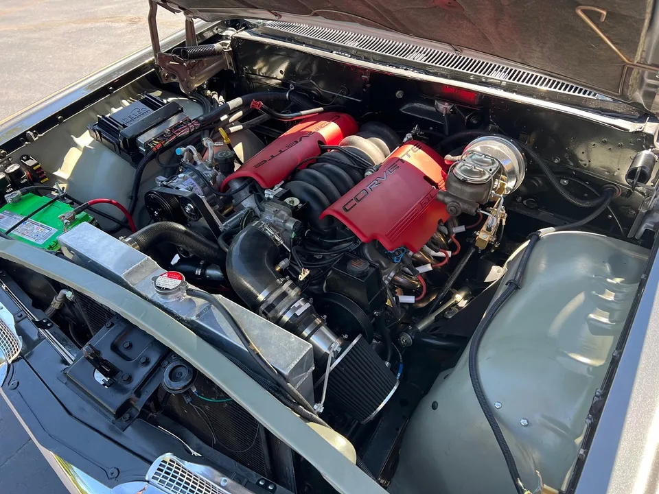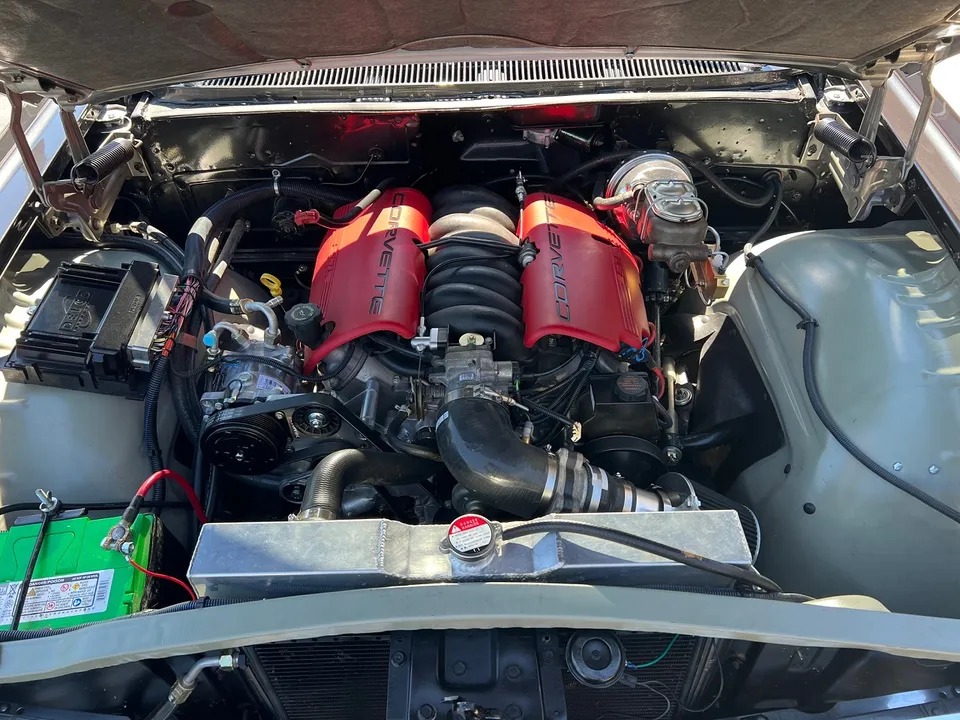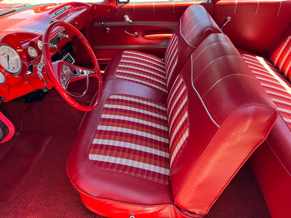 330 miles on Complete Frame Off Restoration, clean Kentucky car, beautiful Charcoal metallic paint, custom tri-tone Impala interior, LS1 EFI engine, 4L60 automatic overdrive transmission, Corvette engine covers, Delco controller, headers, tubular control arms, power steering, 4 wheel power disc brakes with slotted & drilled rotors, air conditioning, serpentine pulley system, aluminum radiator with electric fan, bench seat, custom steering wheel, Classic Instruments gauge cluster, Retrosounds radio, dual exhaust, factory rear with 3.73 limited slip rear end, 275/35ZR20 rear tires, 225/40ZR18 fronts, 18 & 20” Billet Specialties wheels, power antenna, One Bad Bowtie!