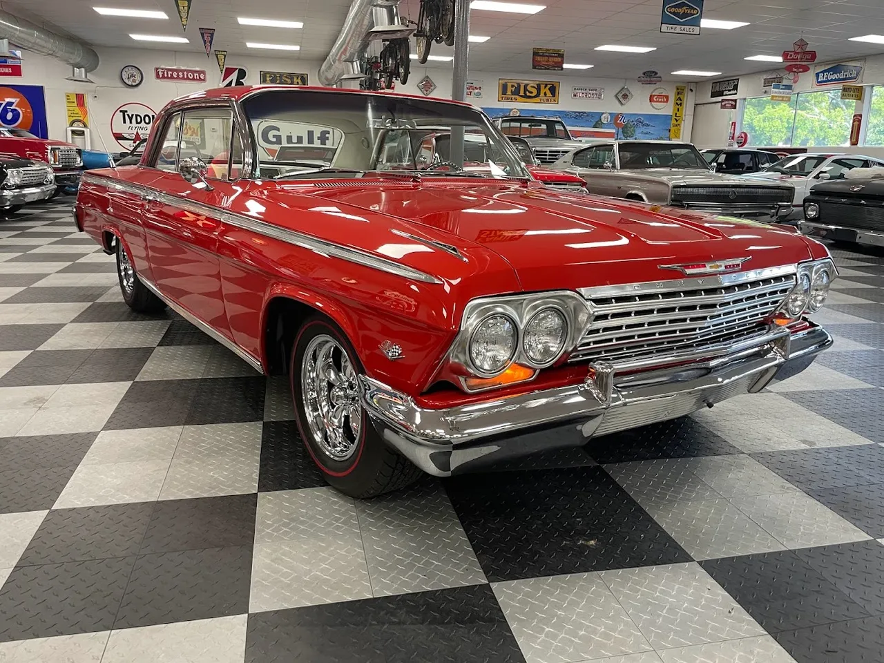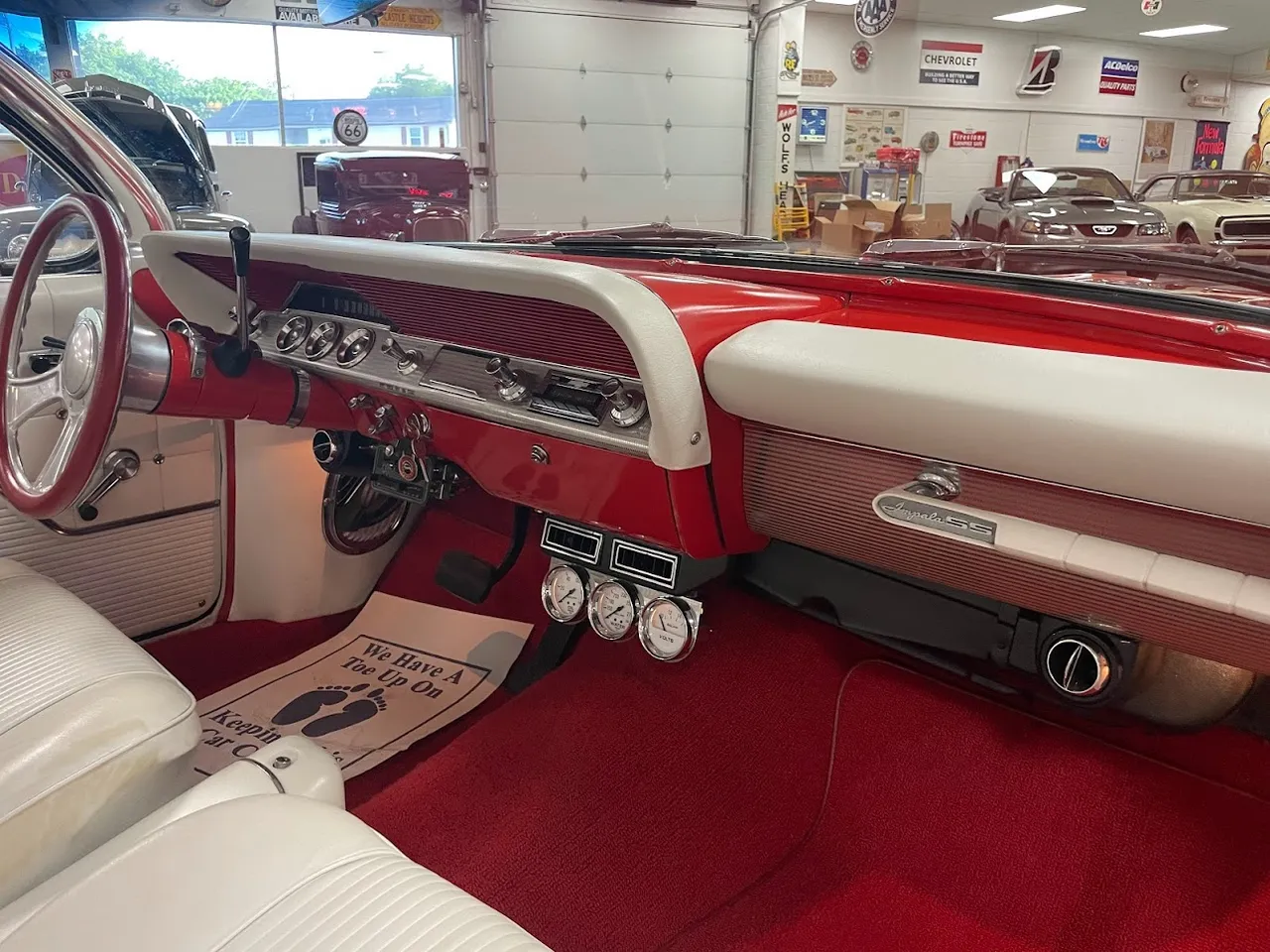 Coming Soon! 1962 Chevrolet Impala SS, 327 ci, 700r4 automatic overdrive transmission, Power steering, power disc brakes, vintage air, electronic ignition, White bucket seat interior, custom billet steering wheel, tach & gauges, Retrosounds radio, 15” Chrome Rev wheels with radial redline tires, $53,900IN STOCK