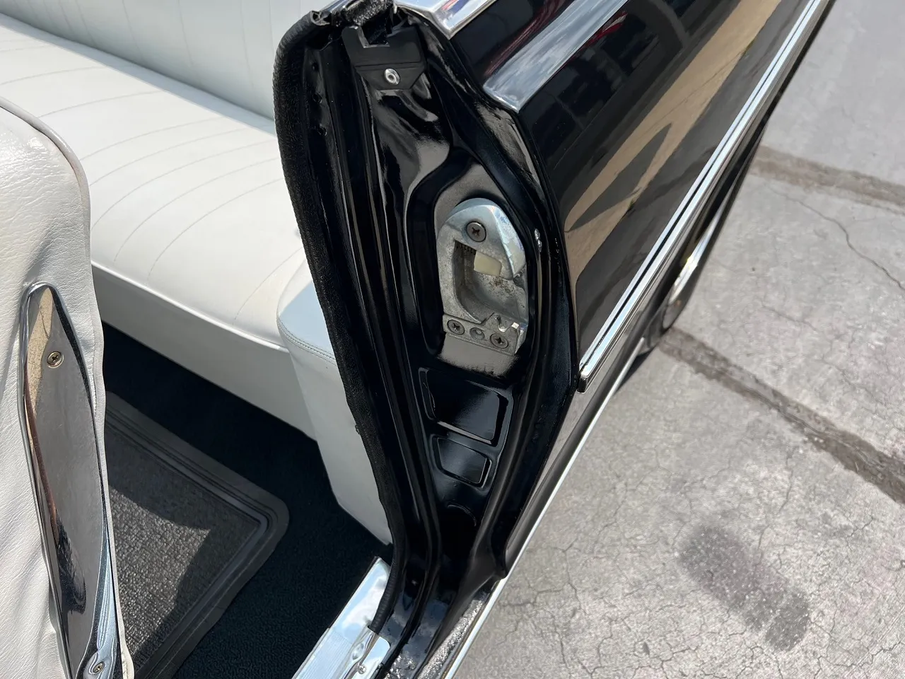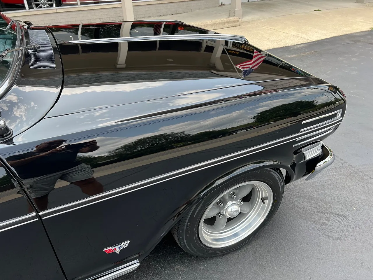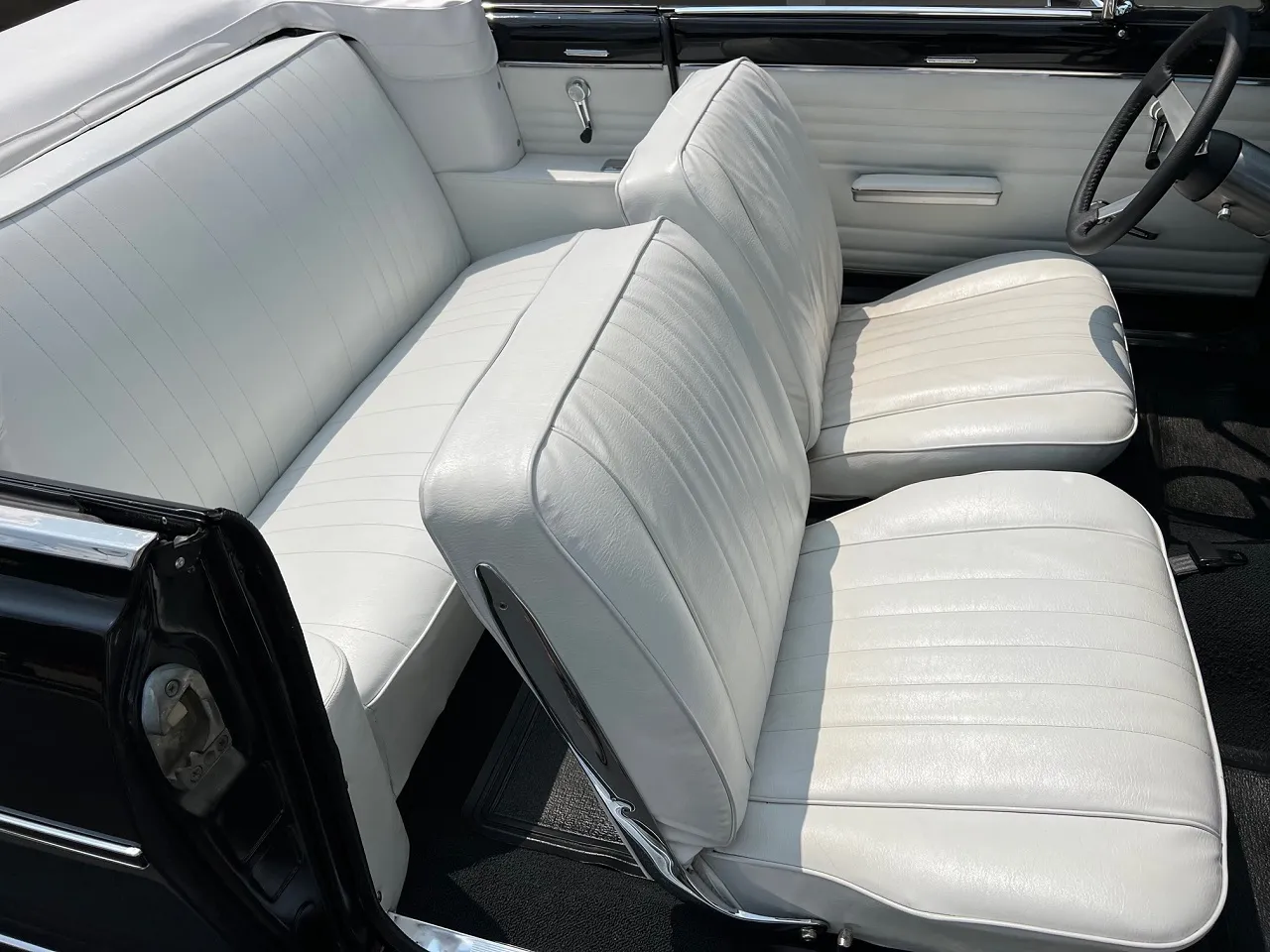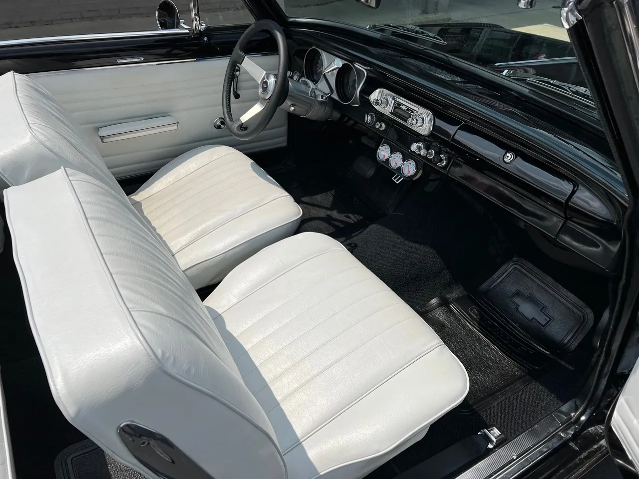 Clean Kentucky car, Body-Up Restoration, beautiful Tuxedo black paint, white vinyl interior, 350 ci engine, Holley Performance 4 bbl, Edelbrock aluminum intake, ceramic coated ram’s horn exhaust manifolds, Mallory Unilite distributor, chrome air cleaner & valve covers, power front disc brakes, aluminum radiator with shroud, 350 turbohydramatic transmission, bucket seats, stainless tilt column with custom reto-billet leather wrapped wheel, factory dash, aftermarket gauges, Retrosounds radio, new dual exhaust, factory 10 bolt rear end, 205/70R14 rear tires, 185/60R14 fronts, 14” American Racing Torque Thrust D wheels, dual chrome mirrors, original owner’s manual, Ready to Cruise!IN STOCK